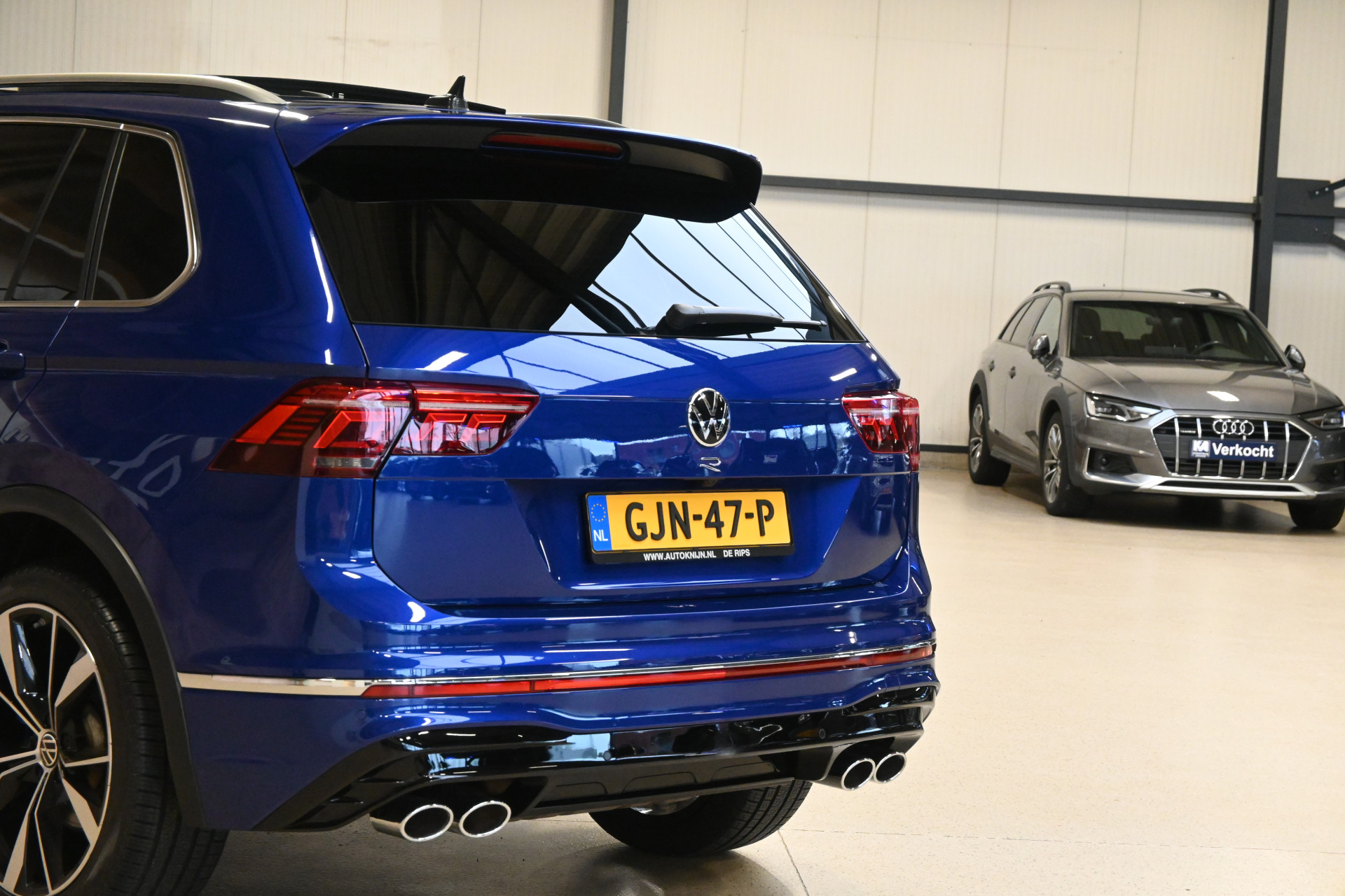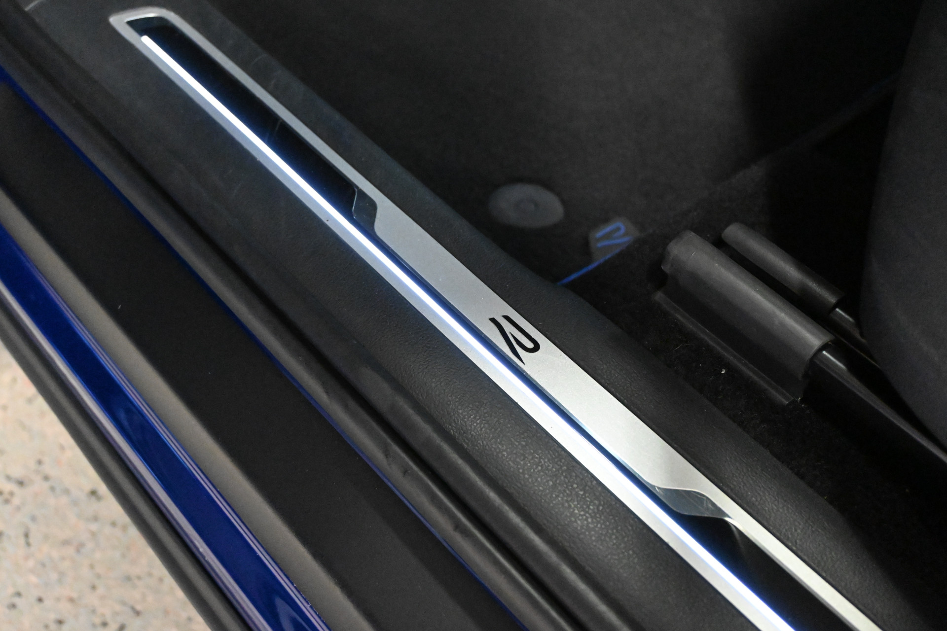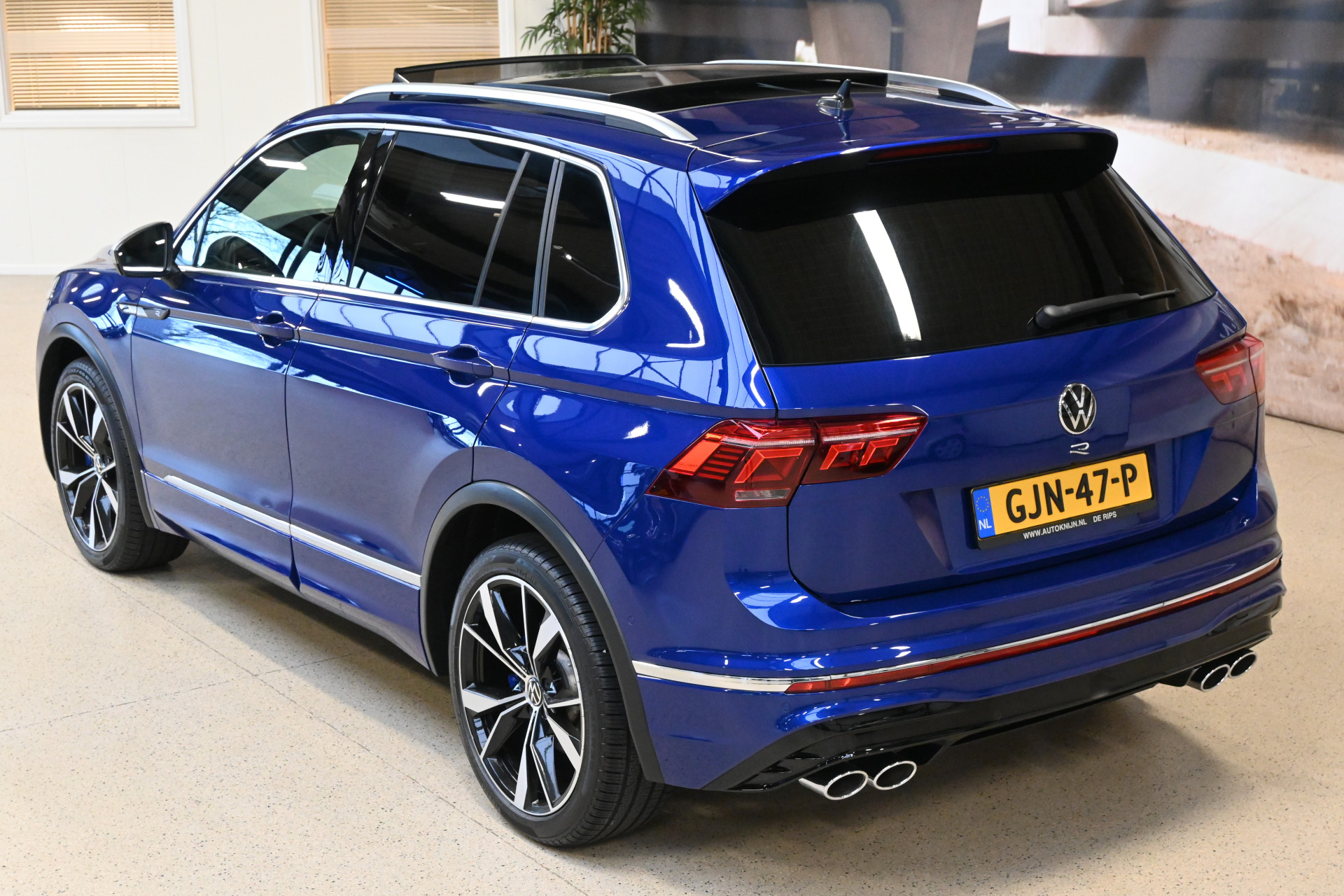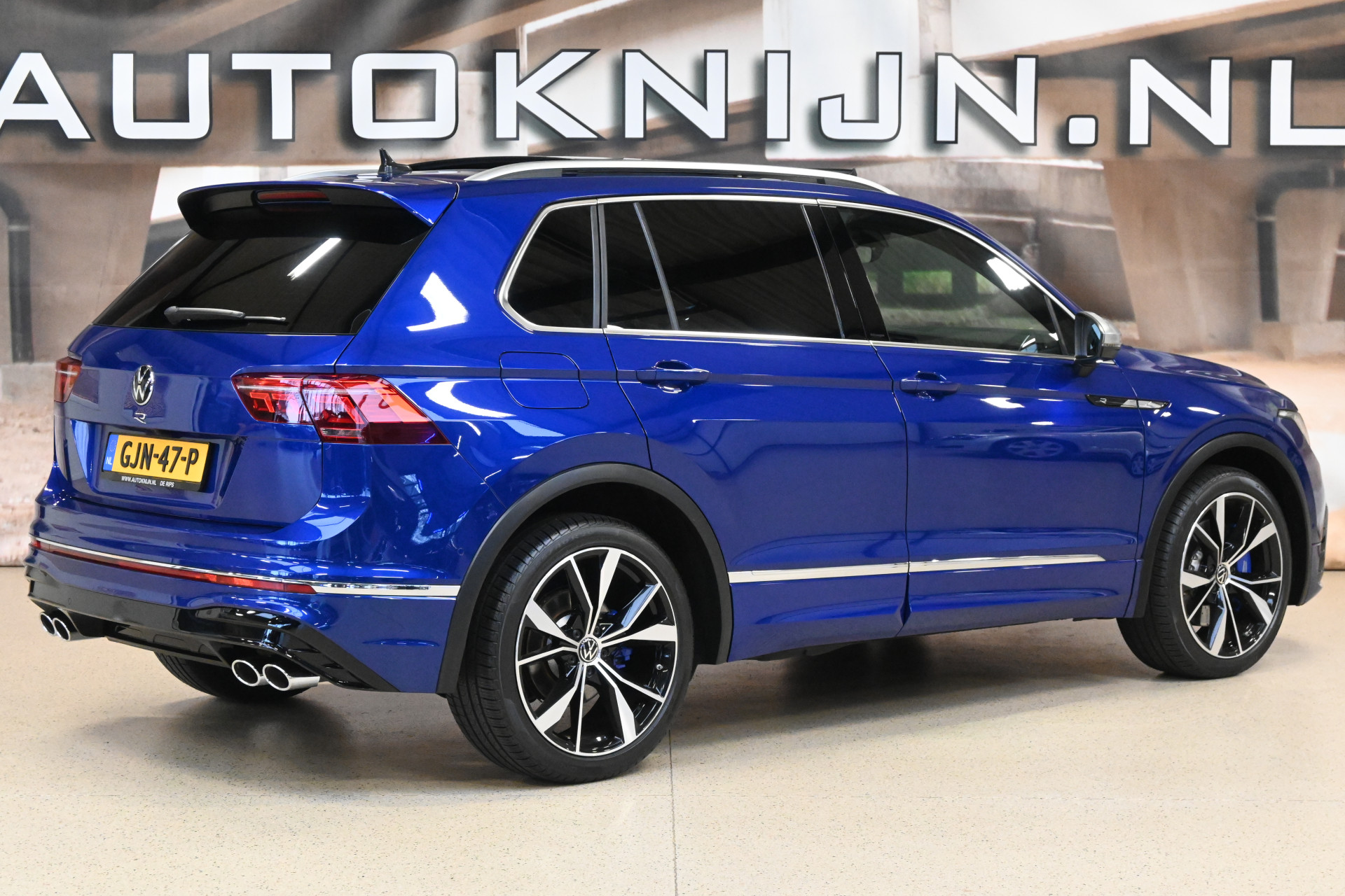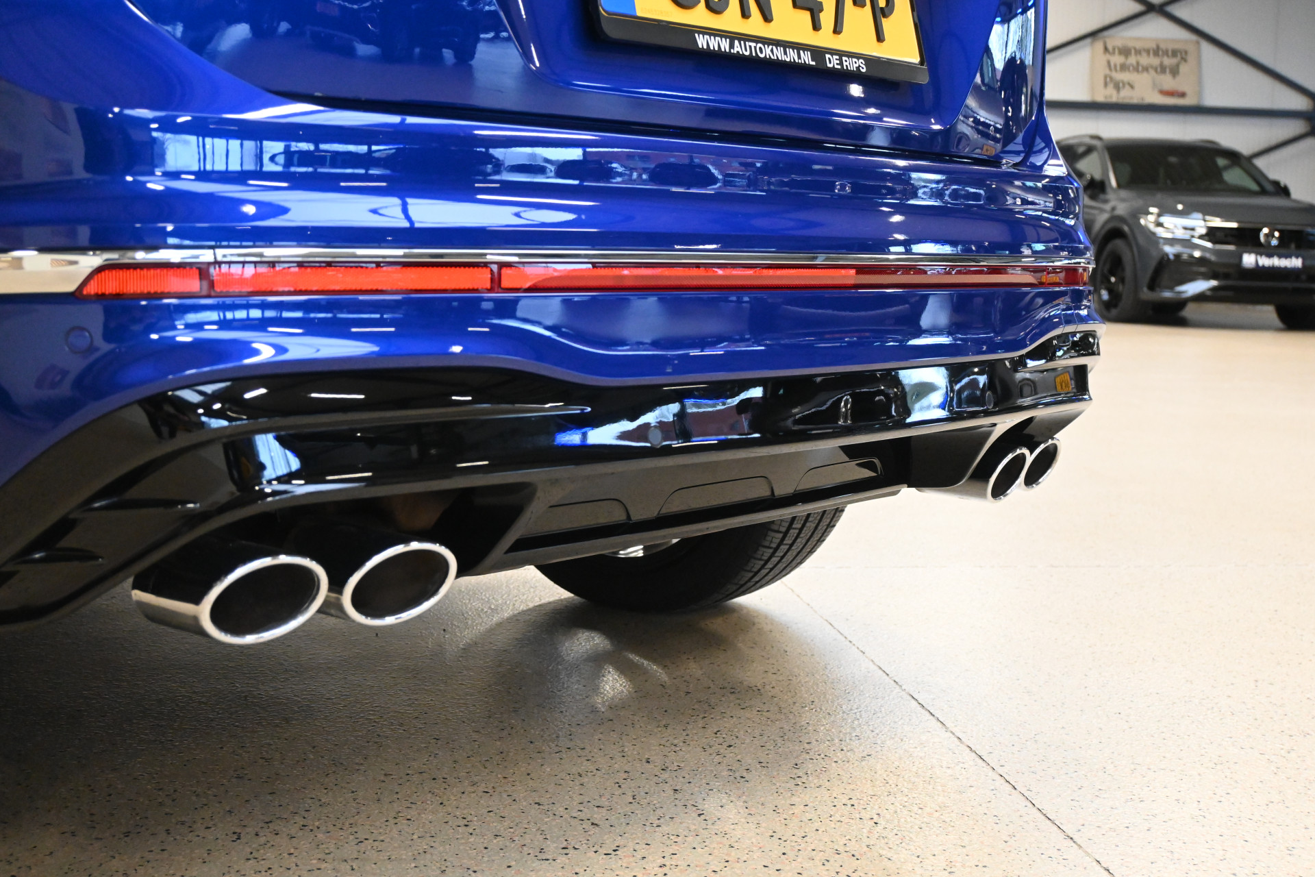De auto is gespoten in de originele Volkswagen R kleur Lapiz Blue, een helder blauwe metallic lak.