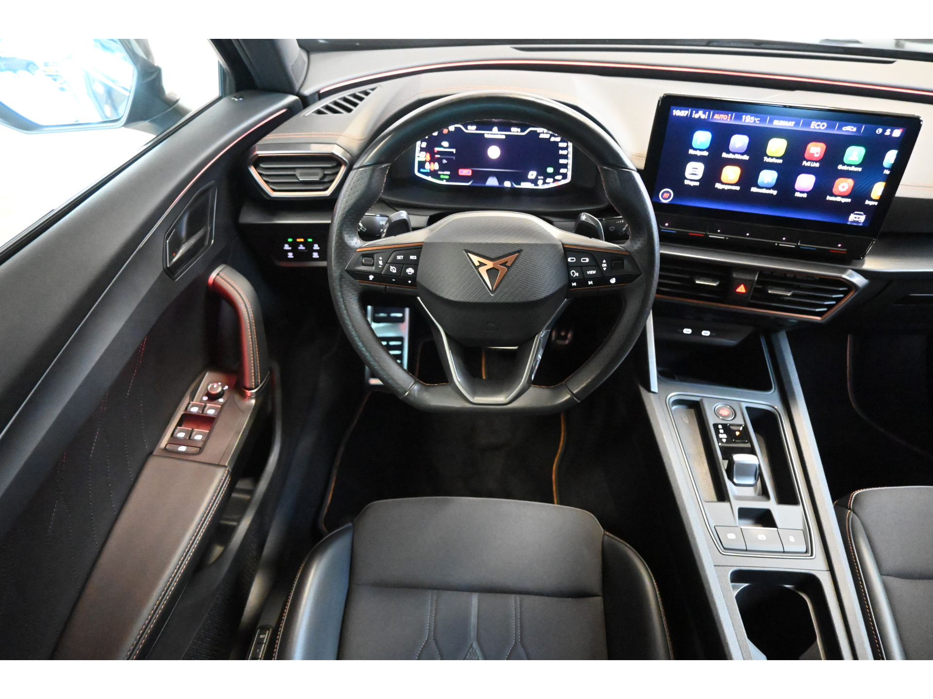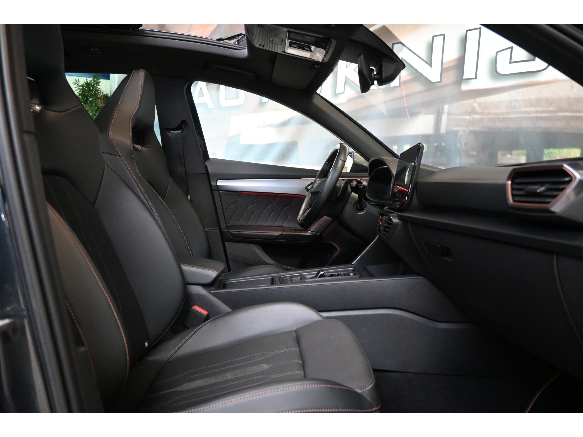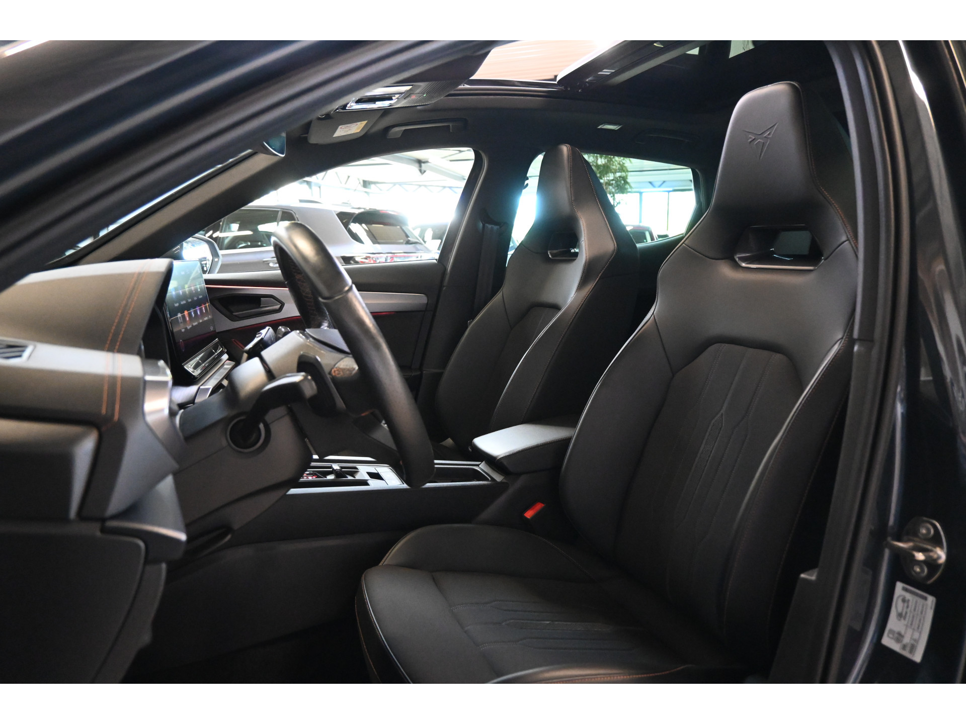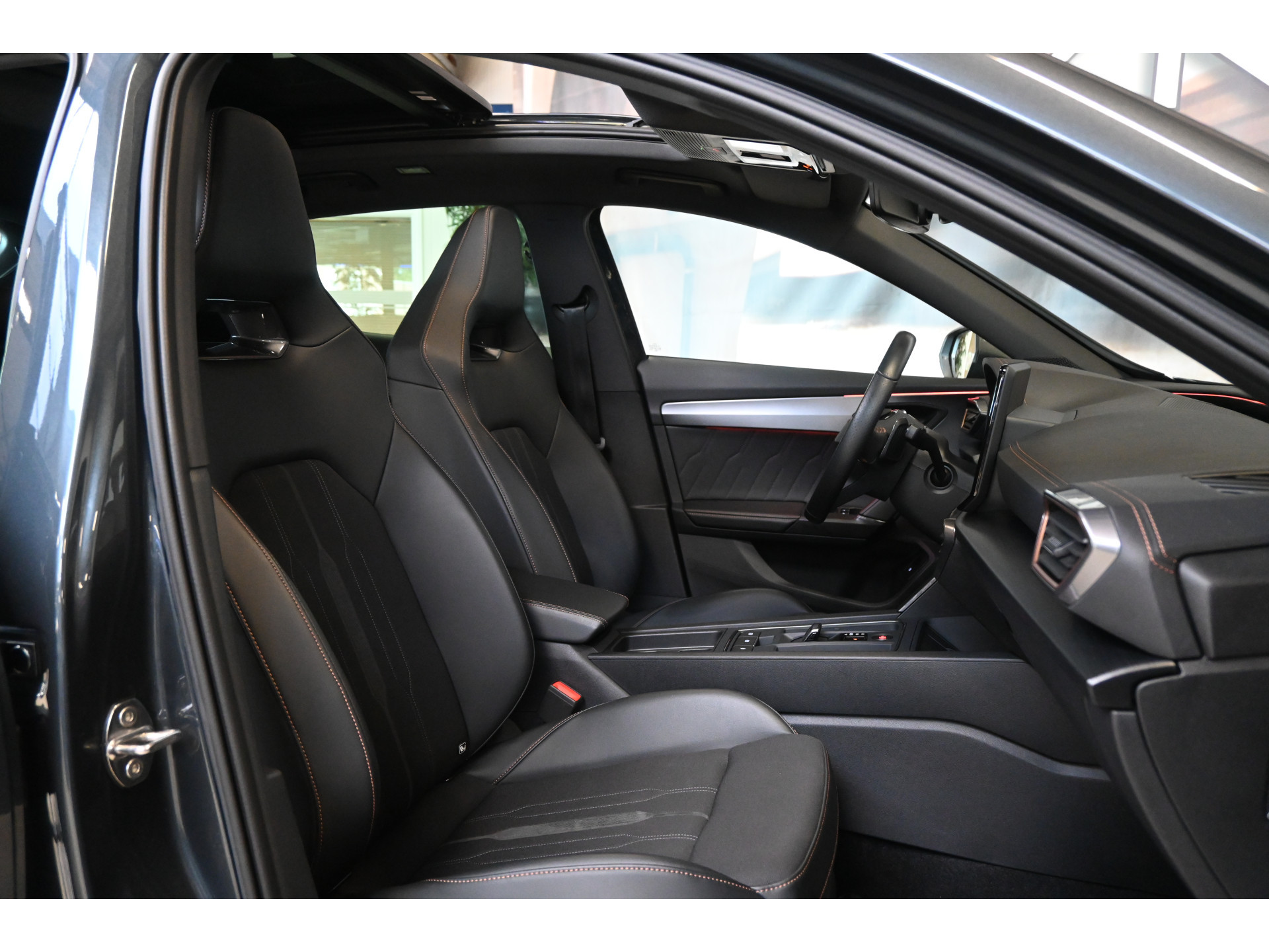 De Cupra sportstoelen zijn bekleed met een mix van leder en stof.