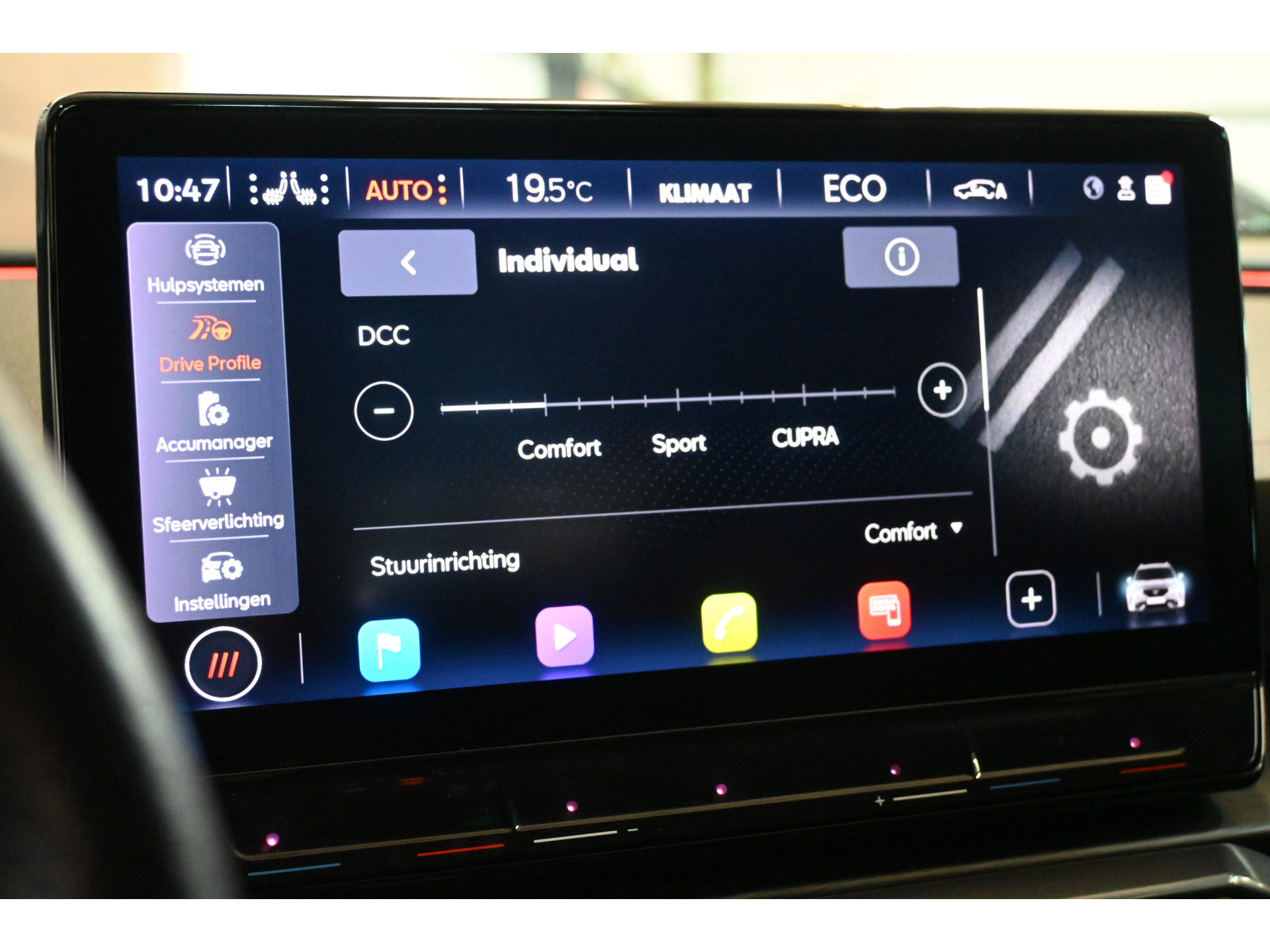 Via het DCC systeem (Dynamic Chassis Control) stelt u zelf de stugheid van de schokdempers in.