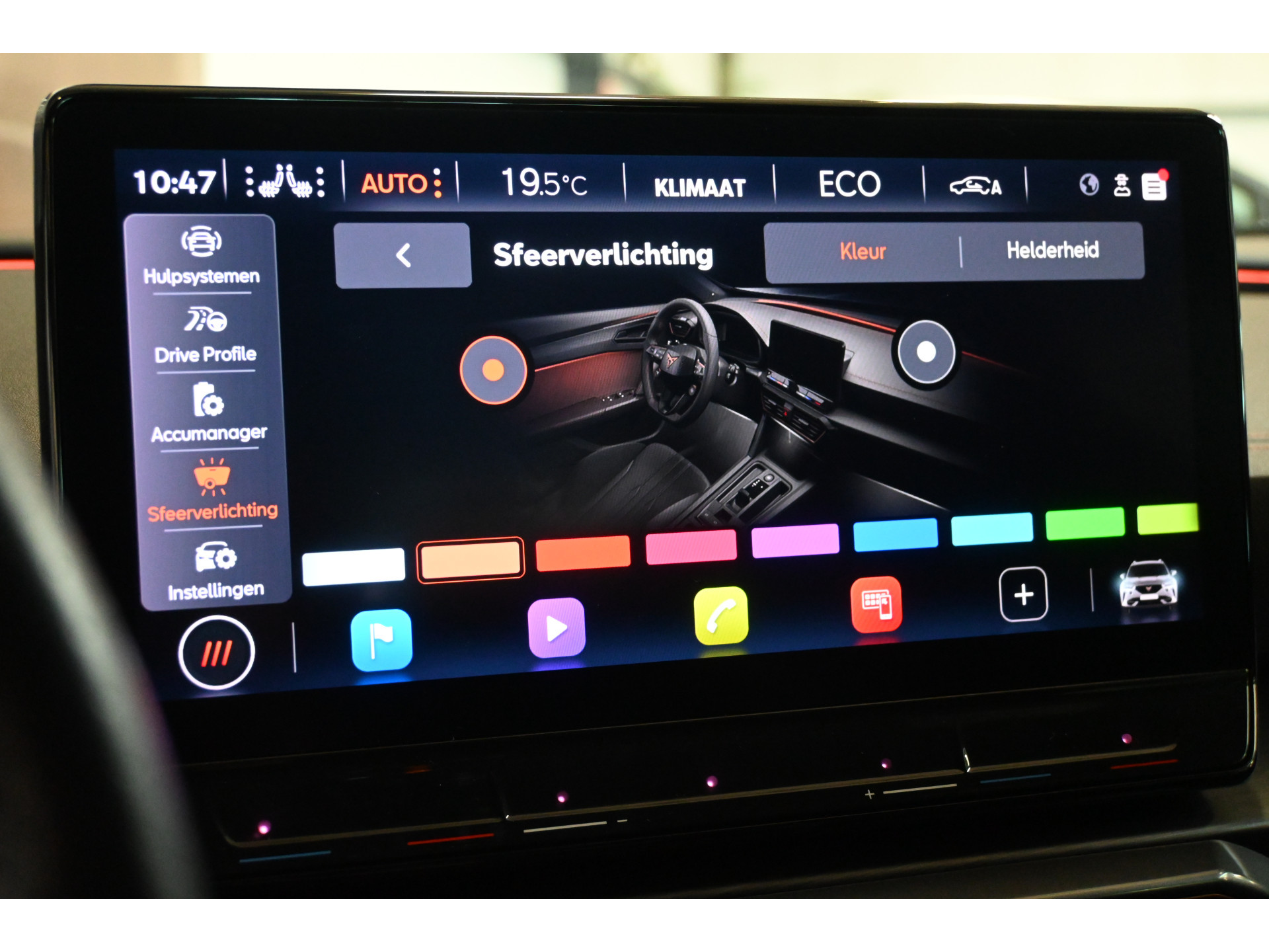 Een digitale cockpit, sfeerverlichting en een draadloze telefoonlader maken het interieur compleet.
