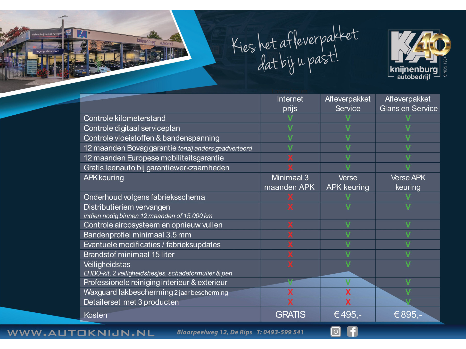 - AFLEVERPAKKET "SERVICE" € 495,- (optioneel)