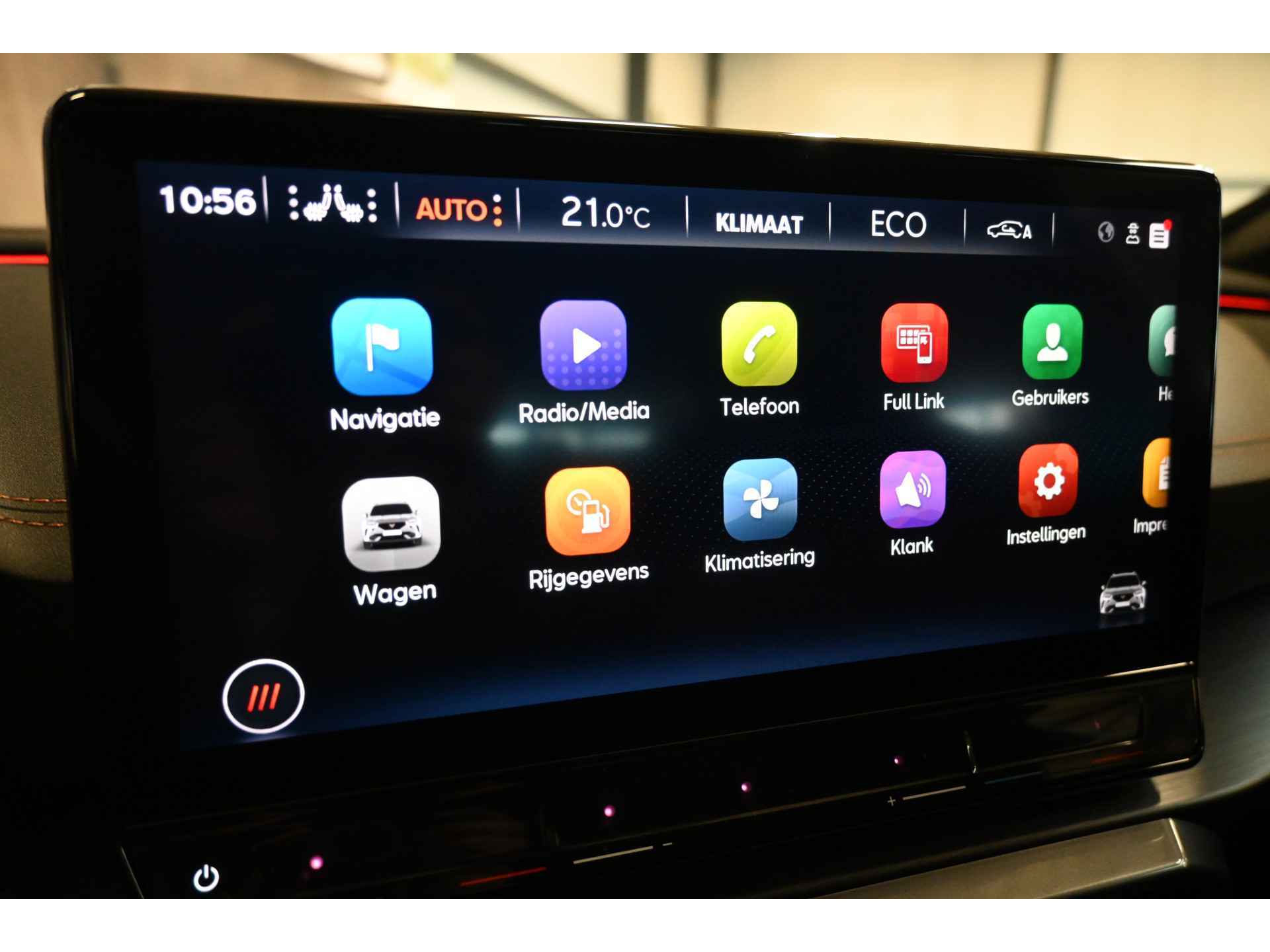 Het multimediasysteem bestaat uit dab+ radio, navigatie, bluetooth carkit en Full link (Apple carplay & Android auto).