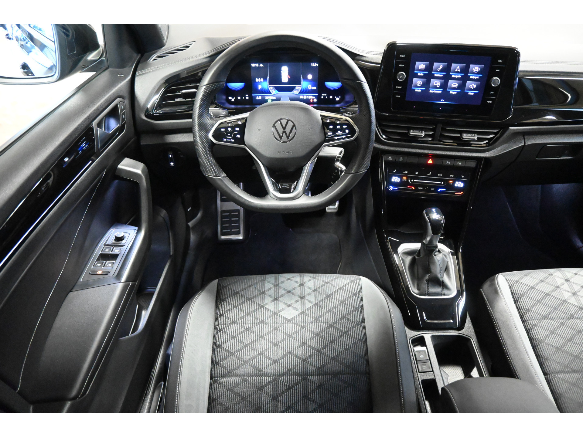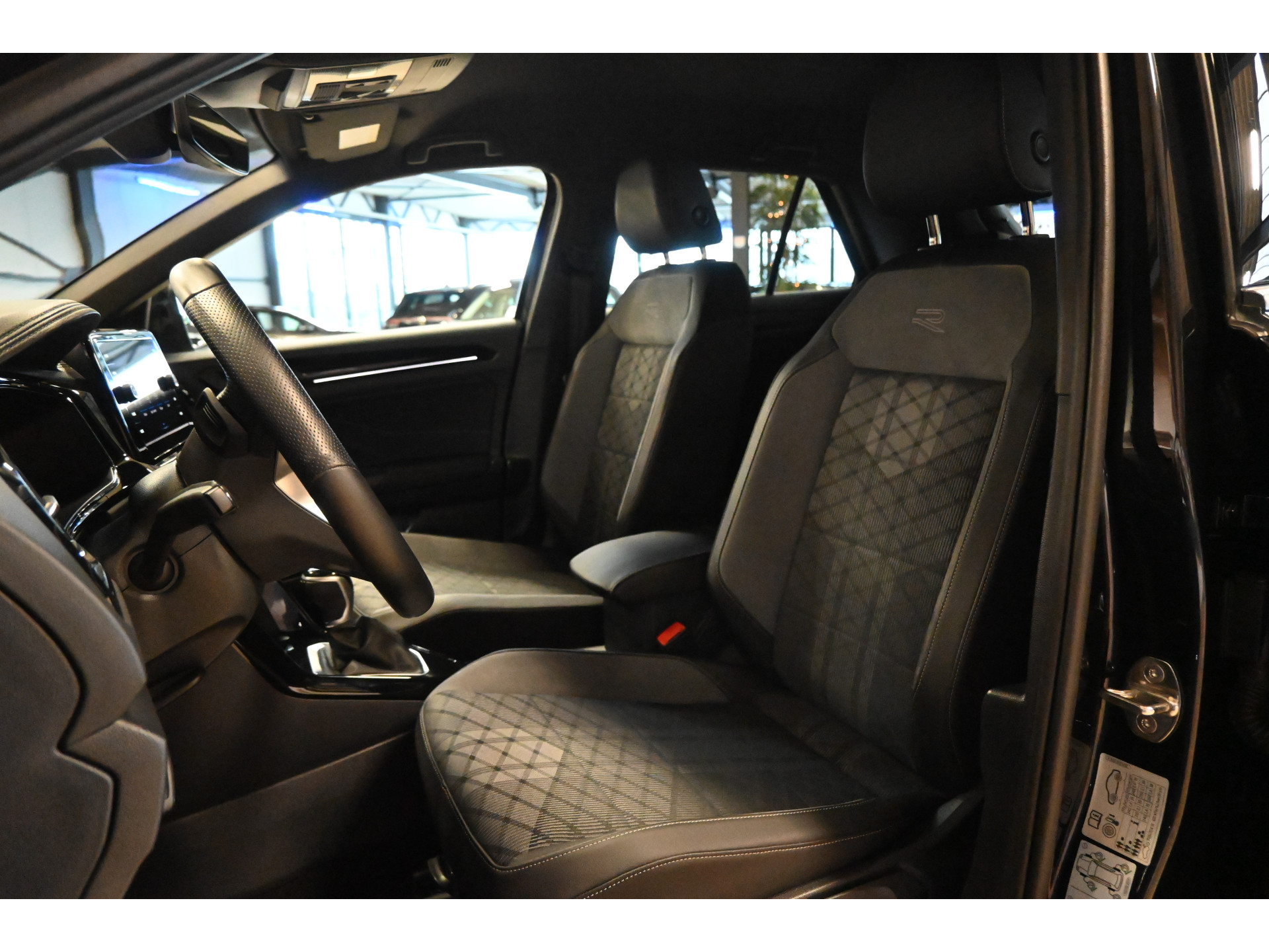 De R-Line sportstoelen zijn bekleed met een mix van leder, alcantara en stof.