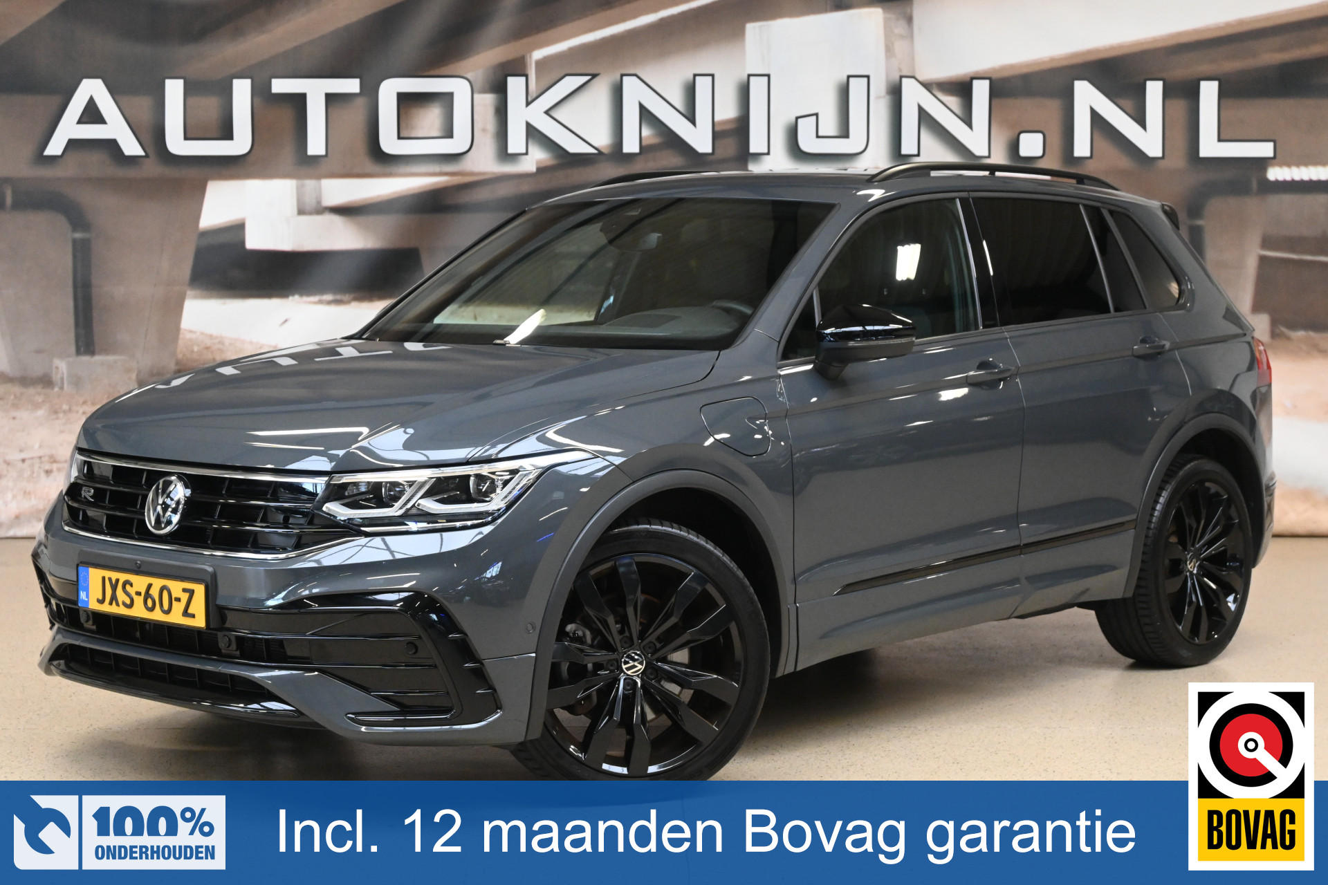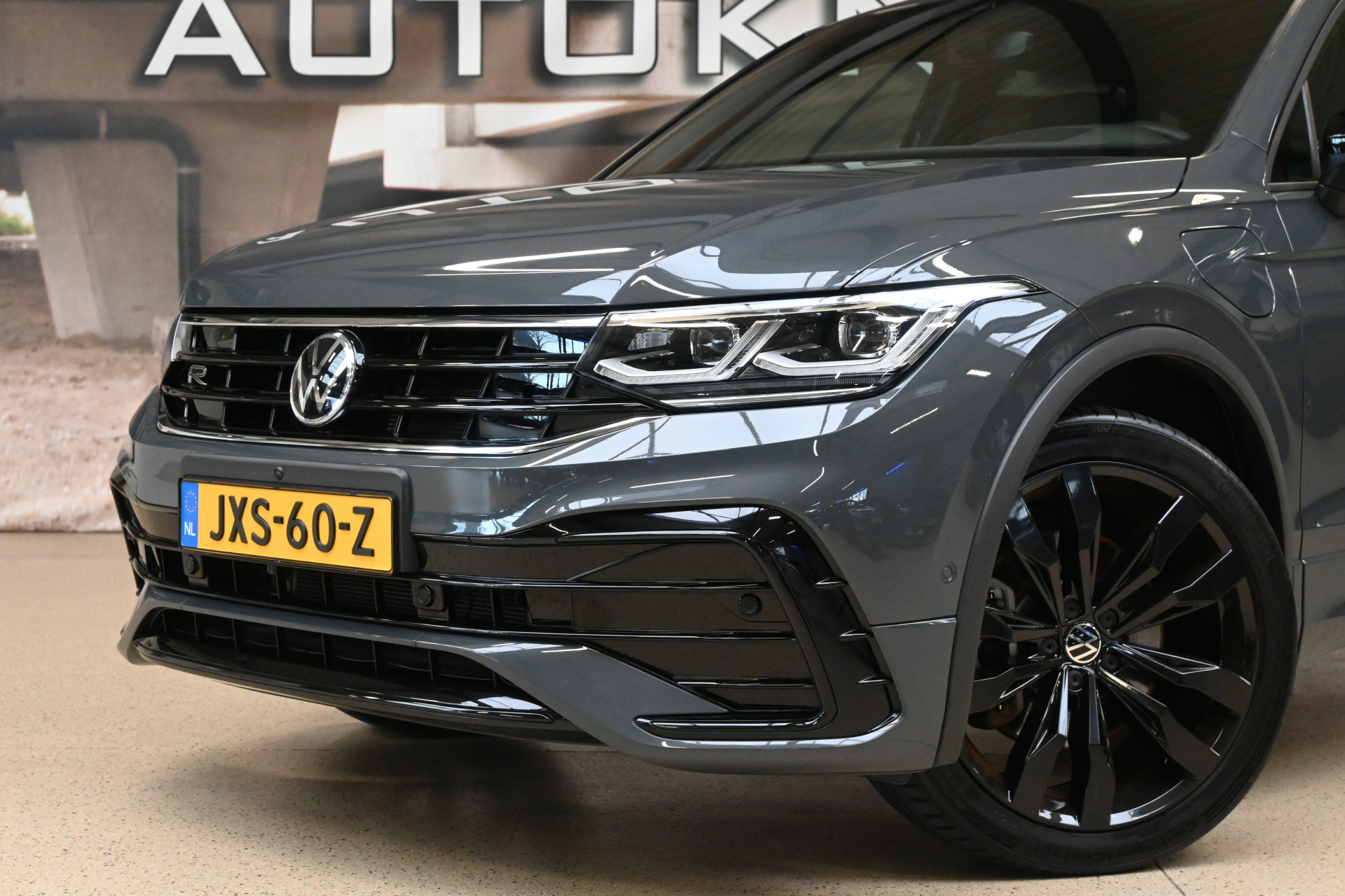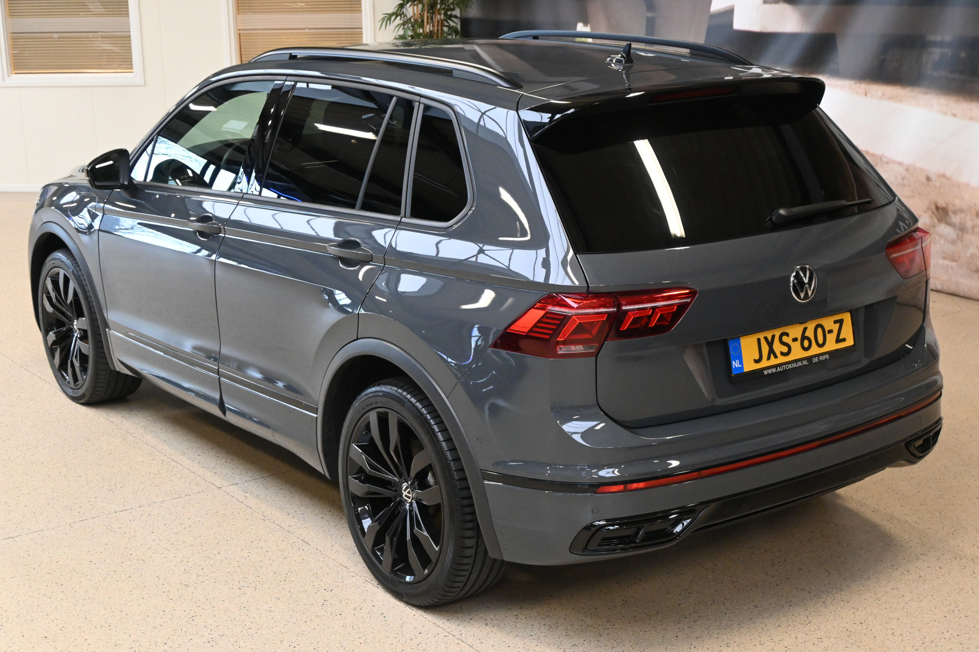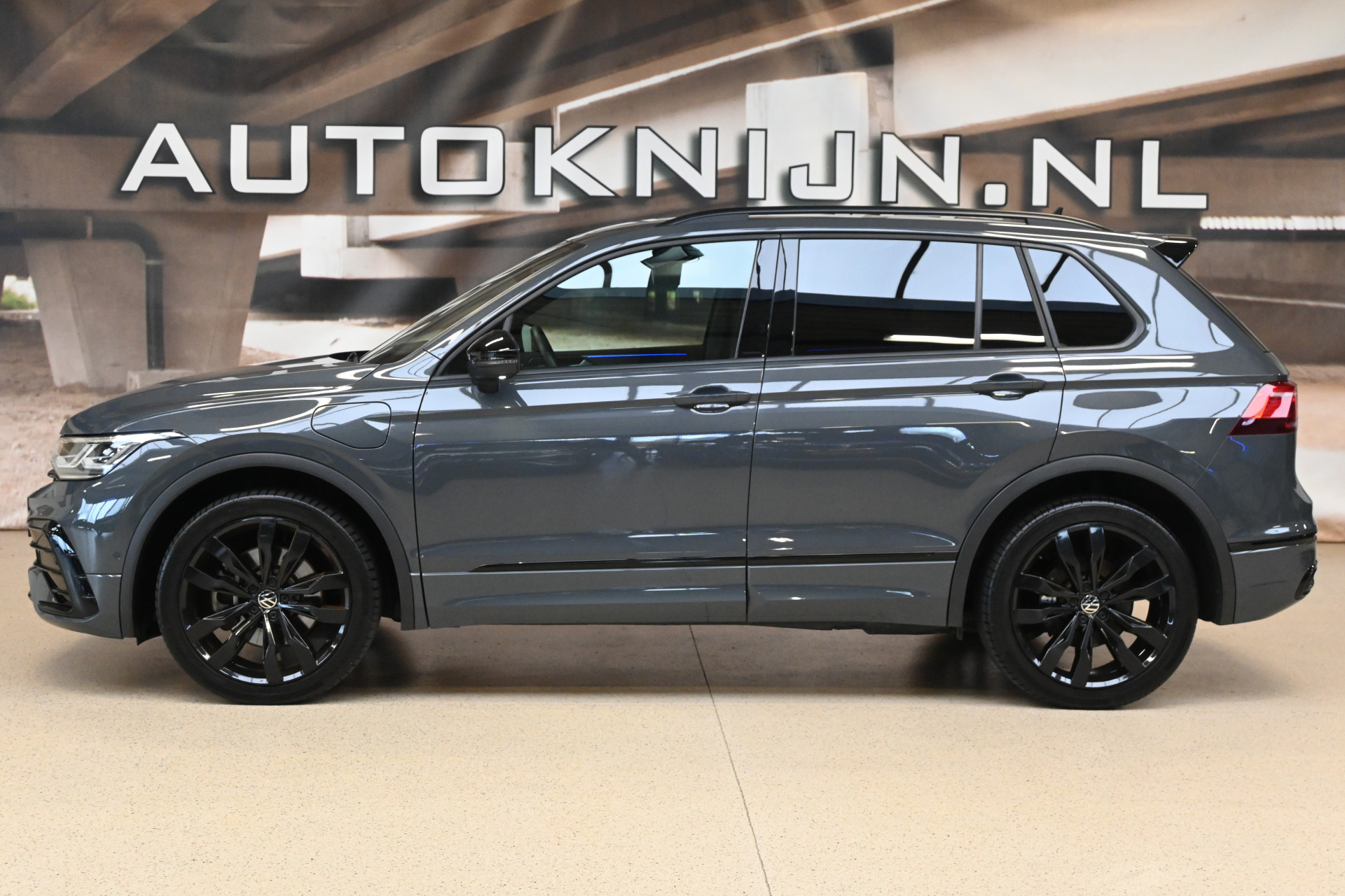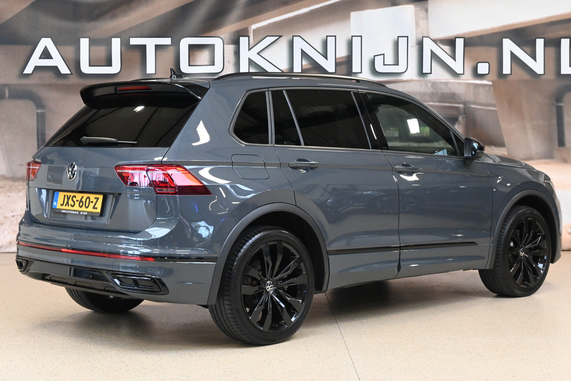 Deze Tiguan is gespoten in de kleur Dolphin Grau een donkergrijze metallic lak en voorzien van het ''Black pack''!