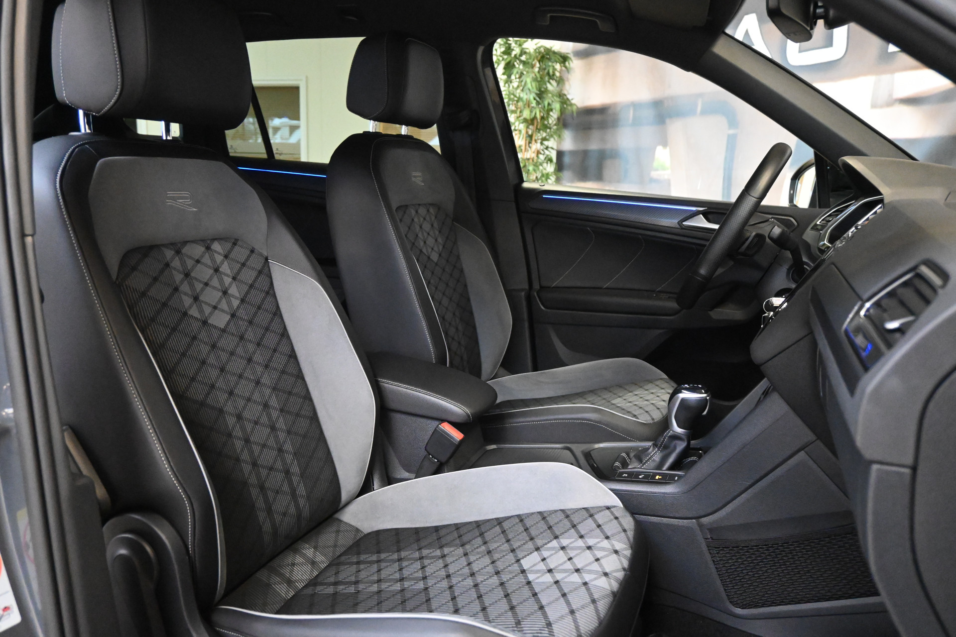 De R-Line sportstoelen zijn bekleed met een mix van leder, alcantara en stof.