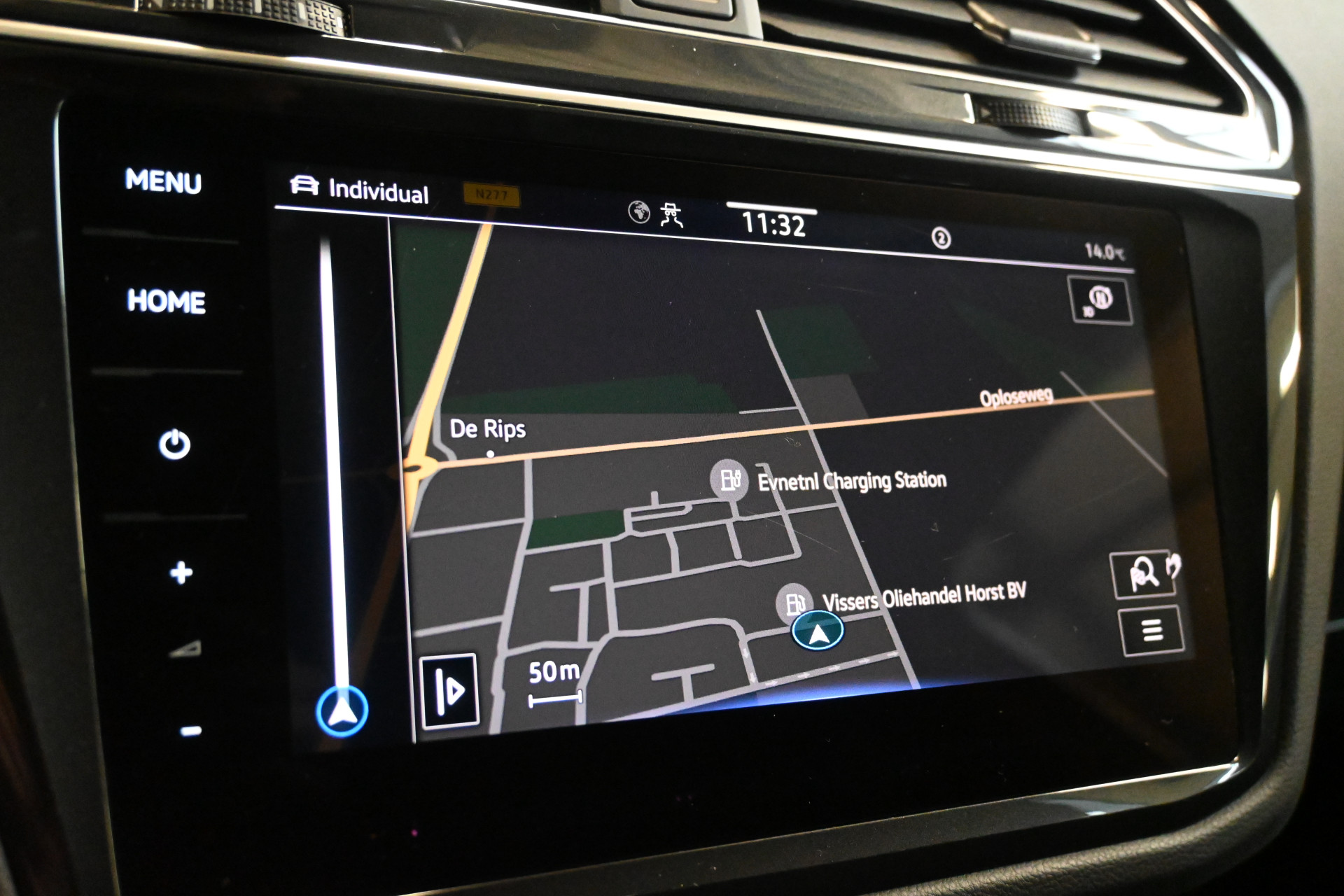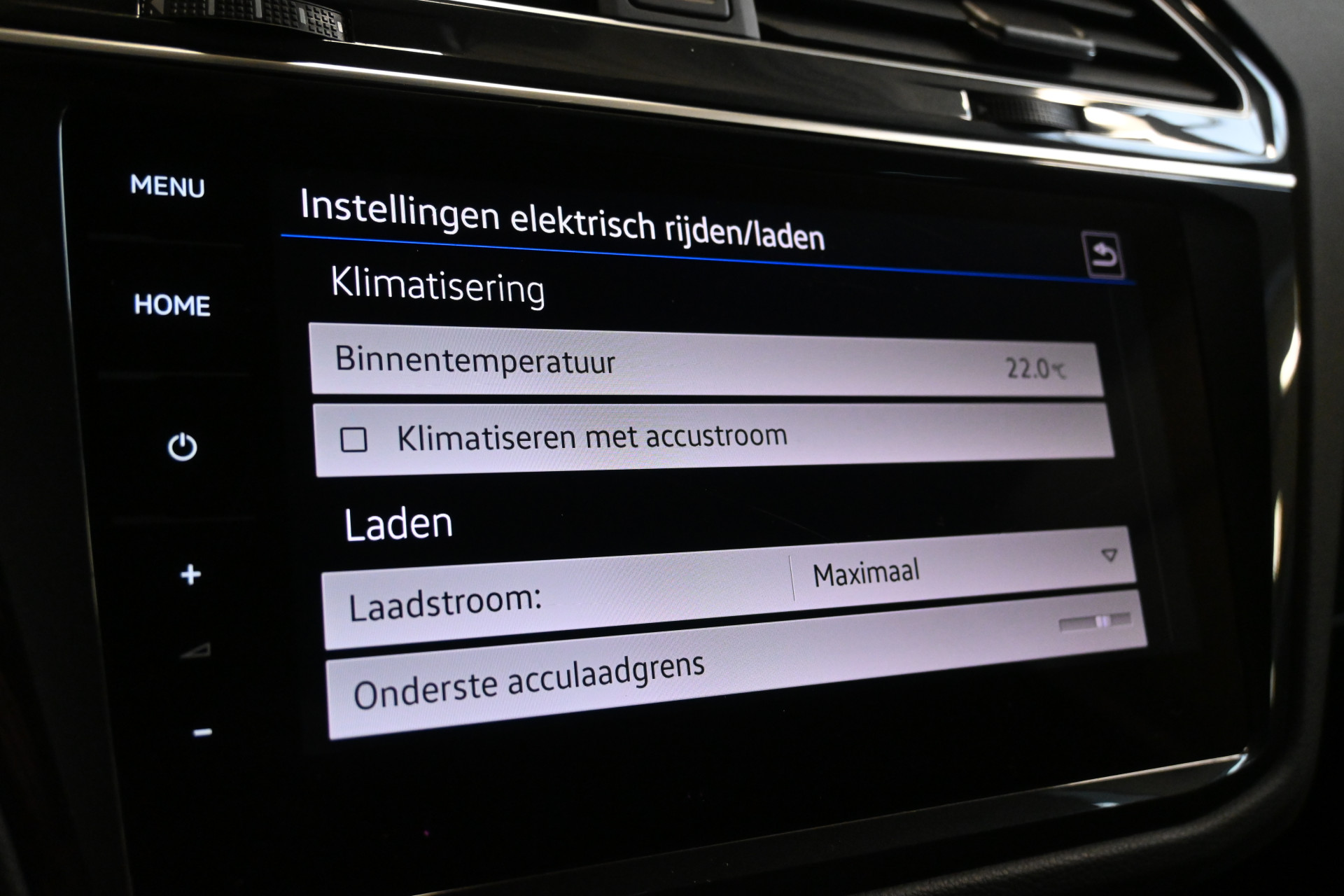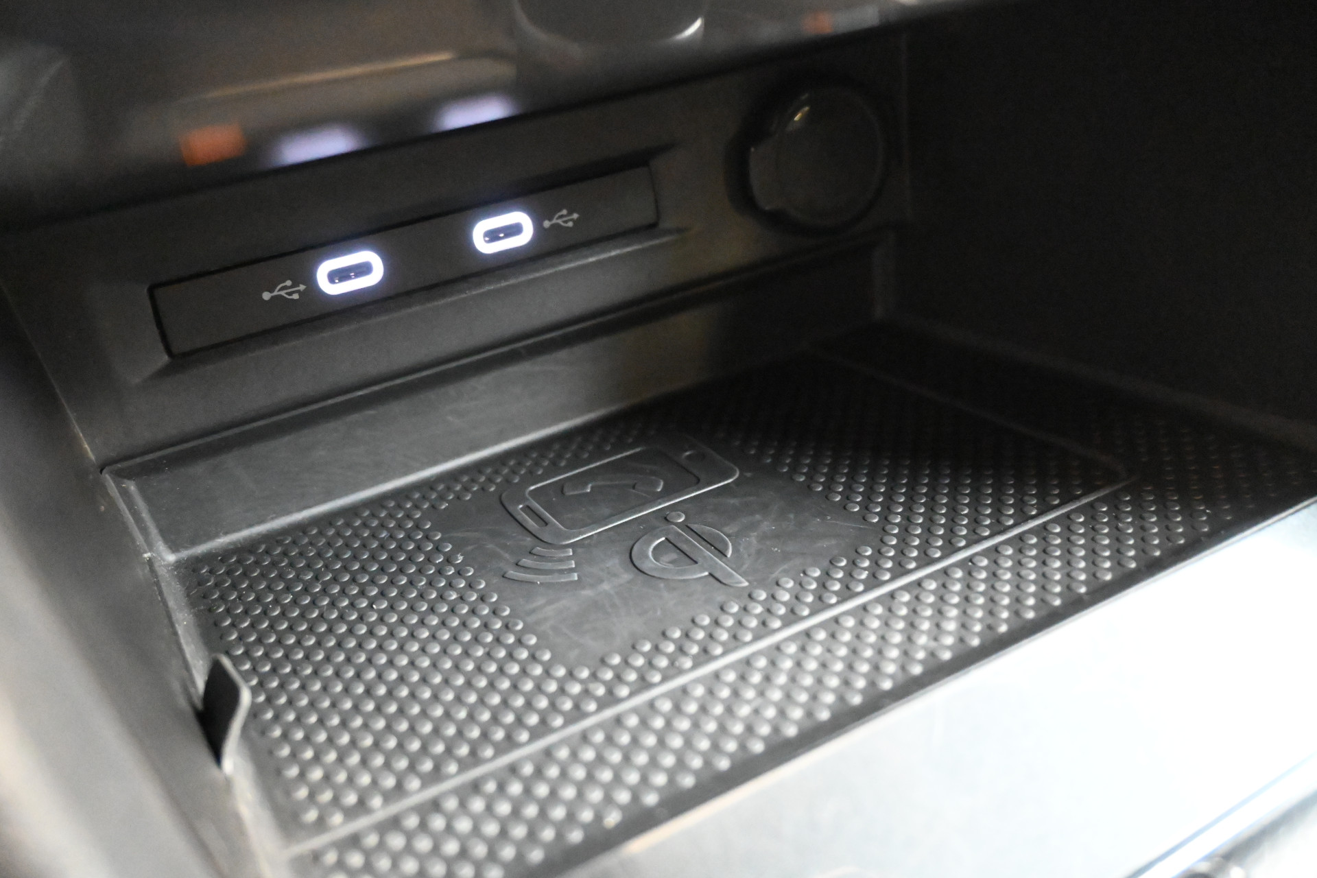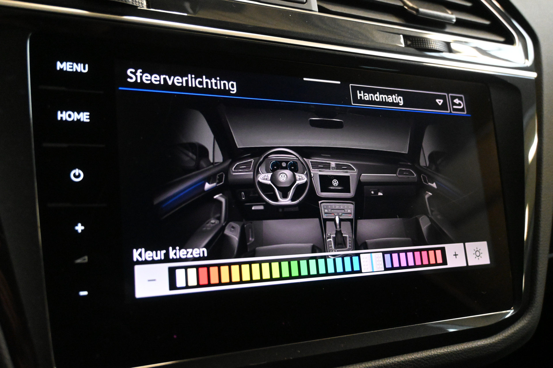 Adaptieve cruise control, sfeerverlichting (kleur instelbaar), een draadloze telefoonlader en het head-up display maken het interieur compleet.