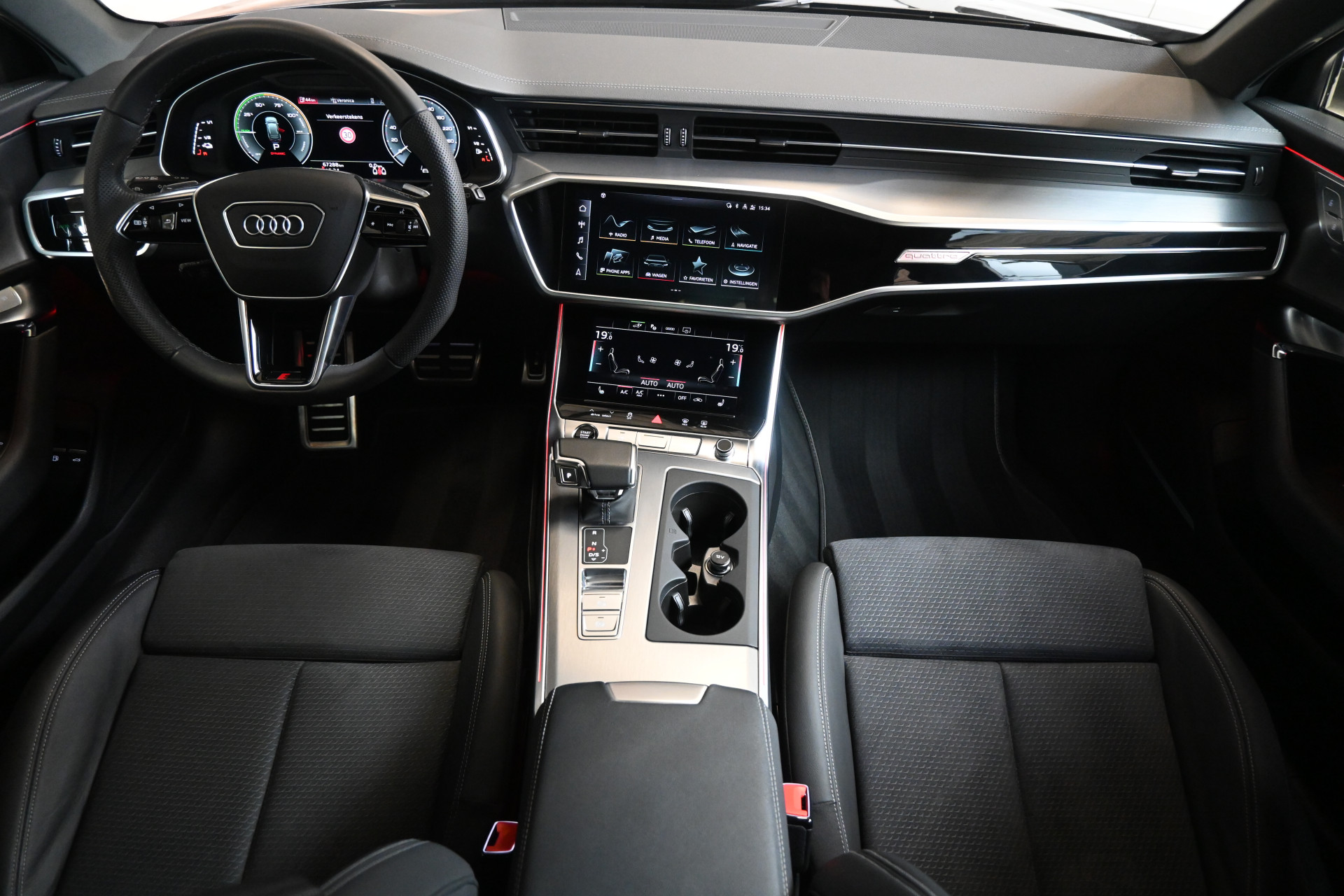 De S-Line sportstoelen zijn bekleed met een mix van leder en alcantara, beide zijn verwarmbaar net als het stuurwiel.