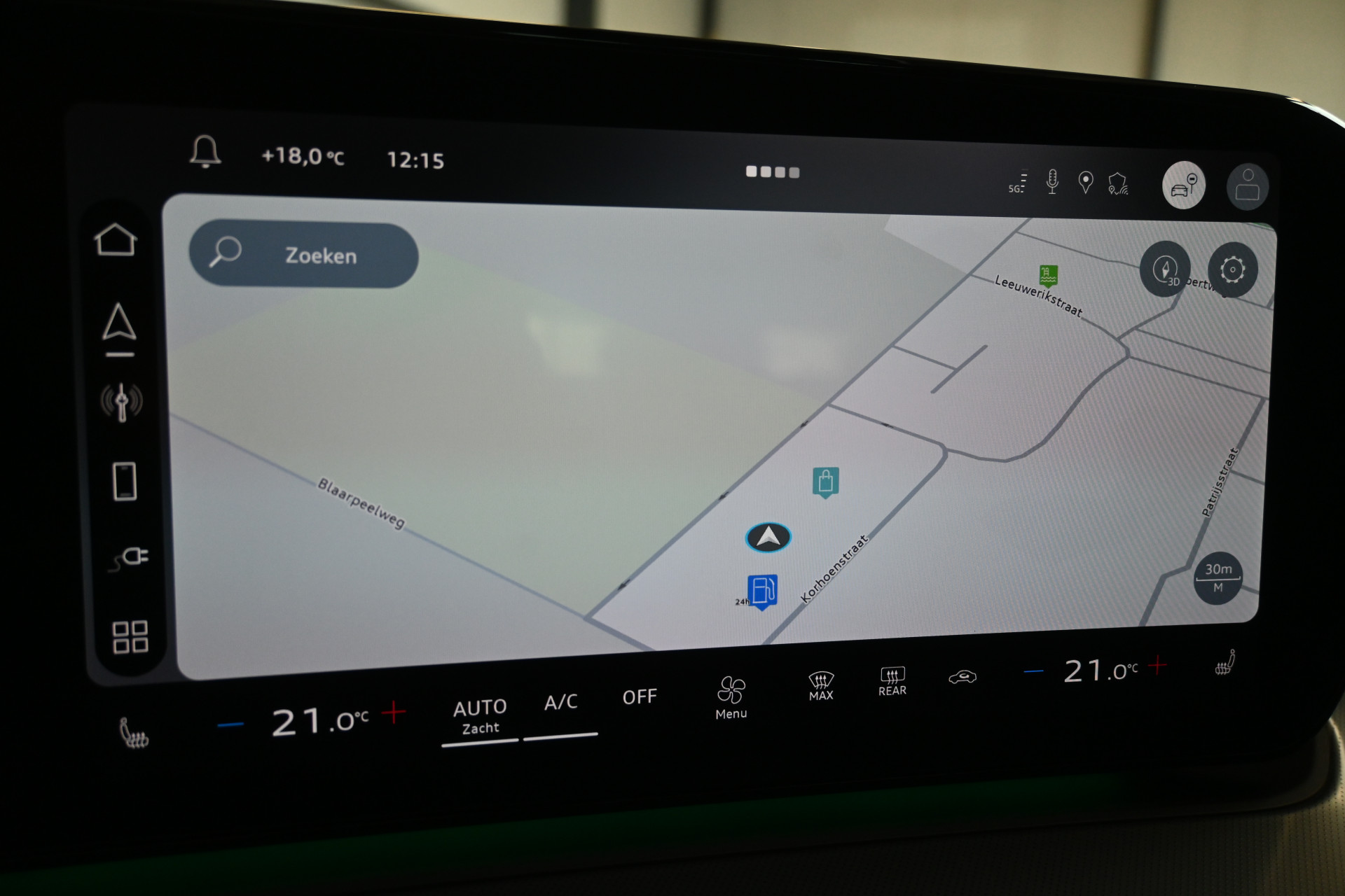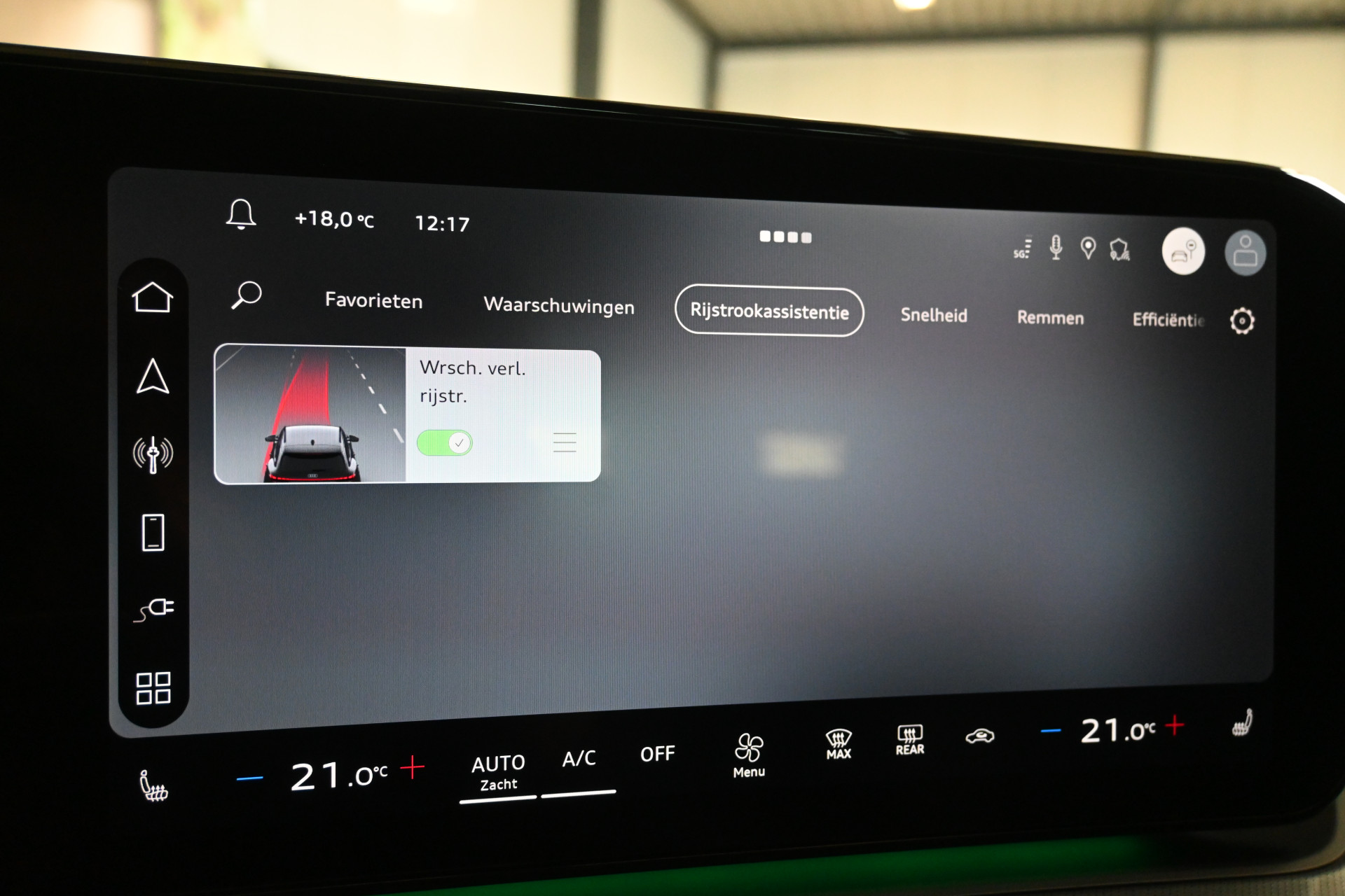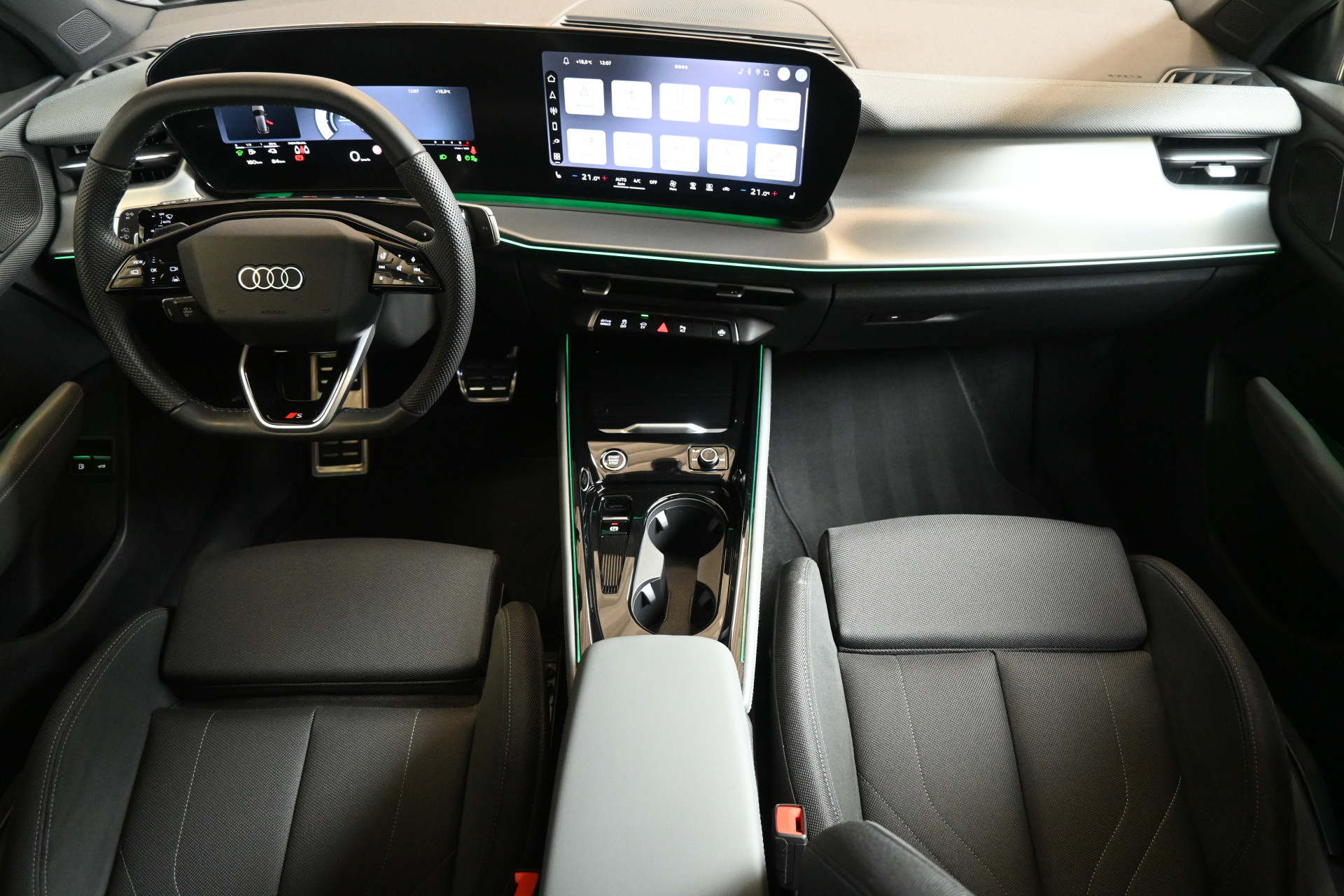 Adaptieve cruise control, sfeerverlichting (kleur instelbaar) en een draadloze telefoonlader maken het interieur compleet.