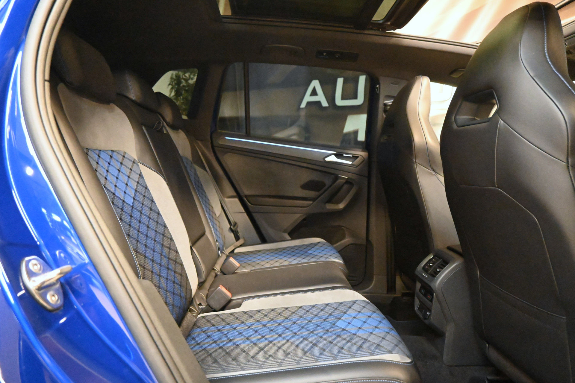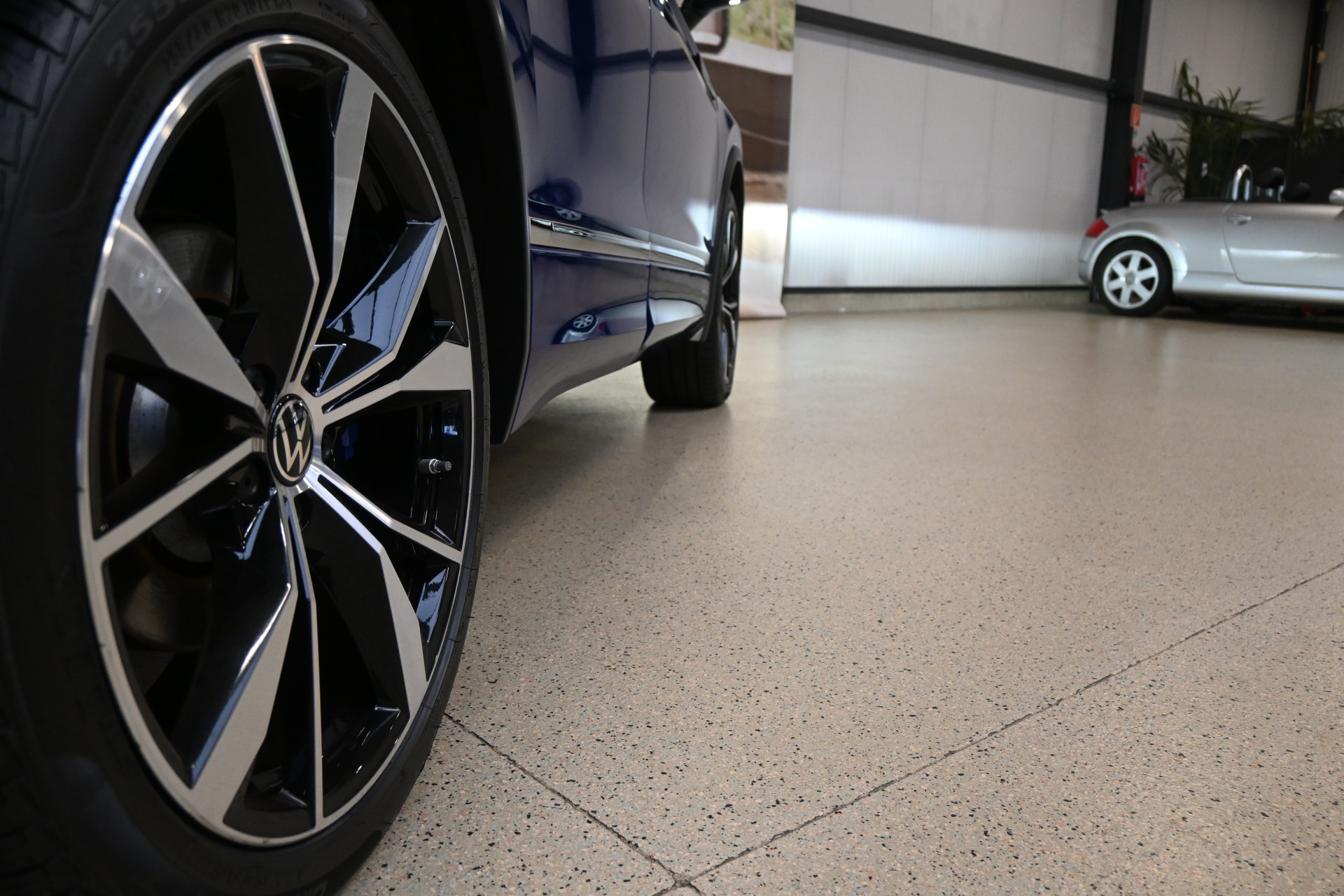 De auto is gespoten in de originele Volkswagen R kleur Lapiz Blue, een helder blauwe metallic lak.