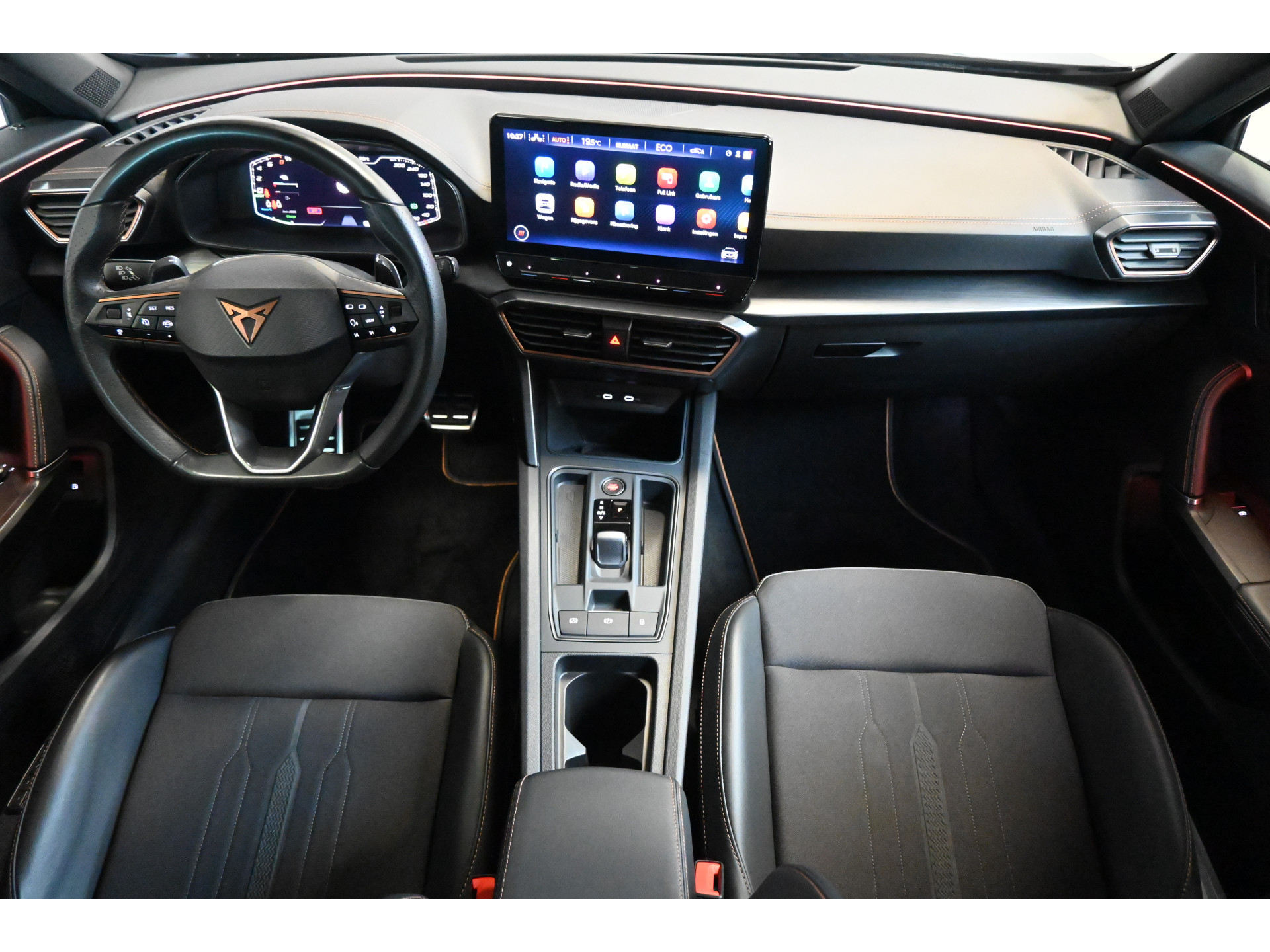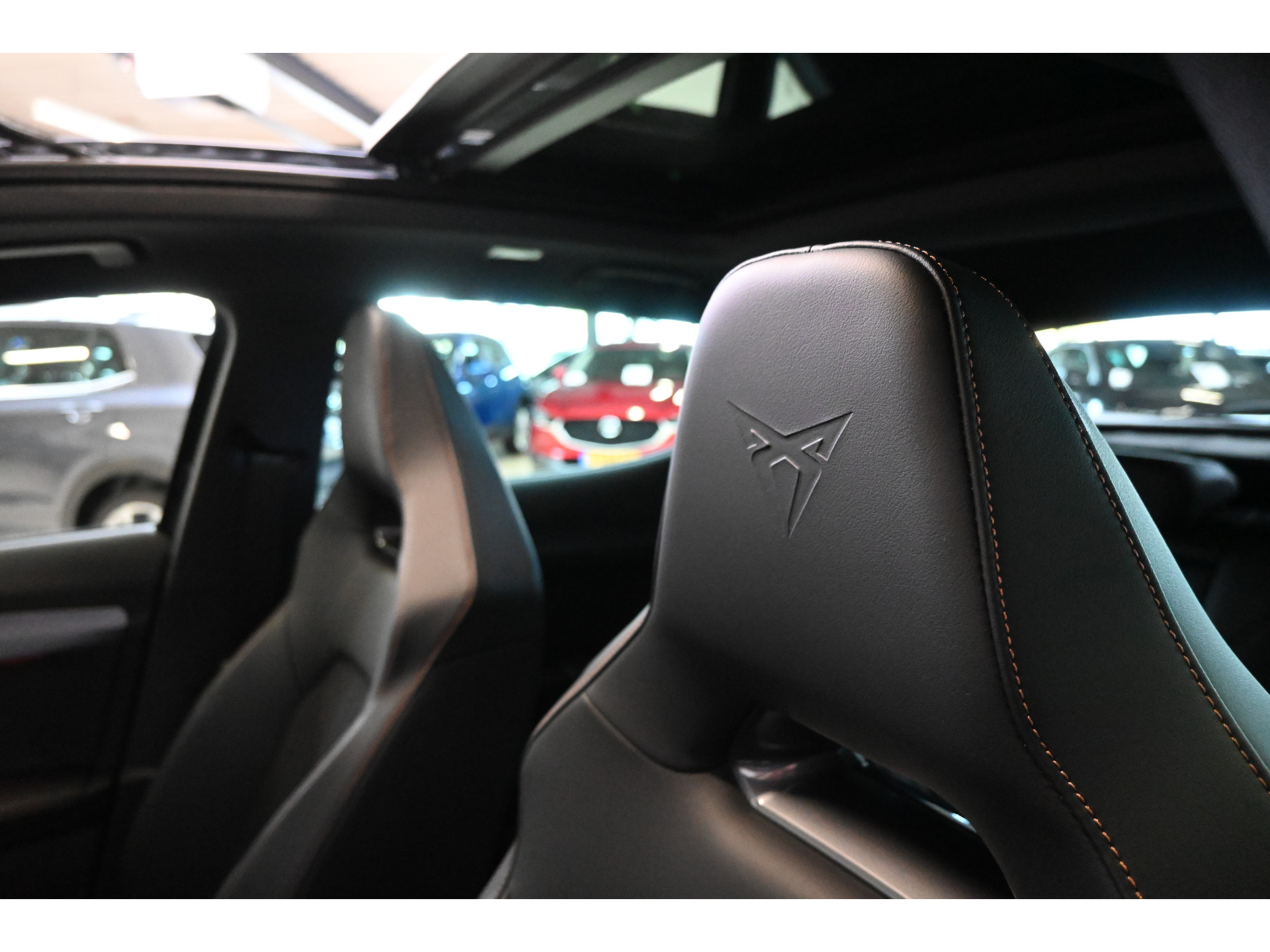 De Cupra sportstoelen zijn bekleed met een mix van leder en stof.