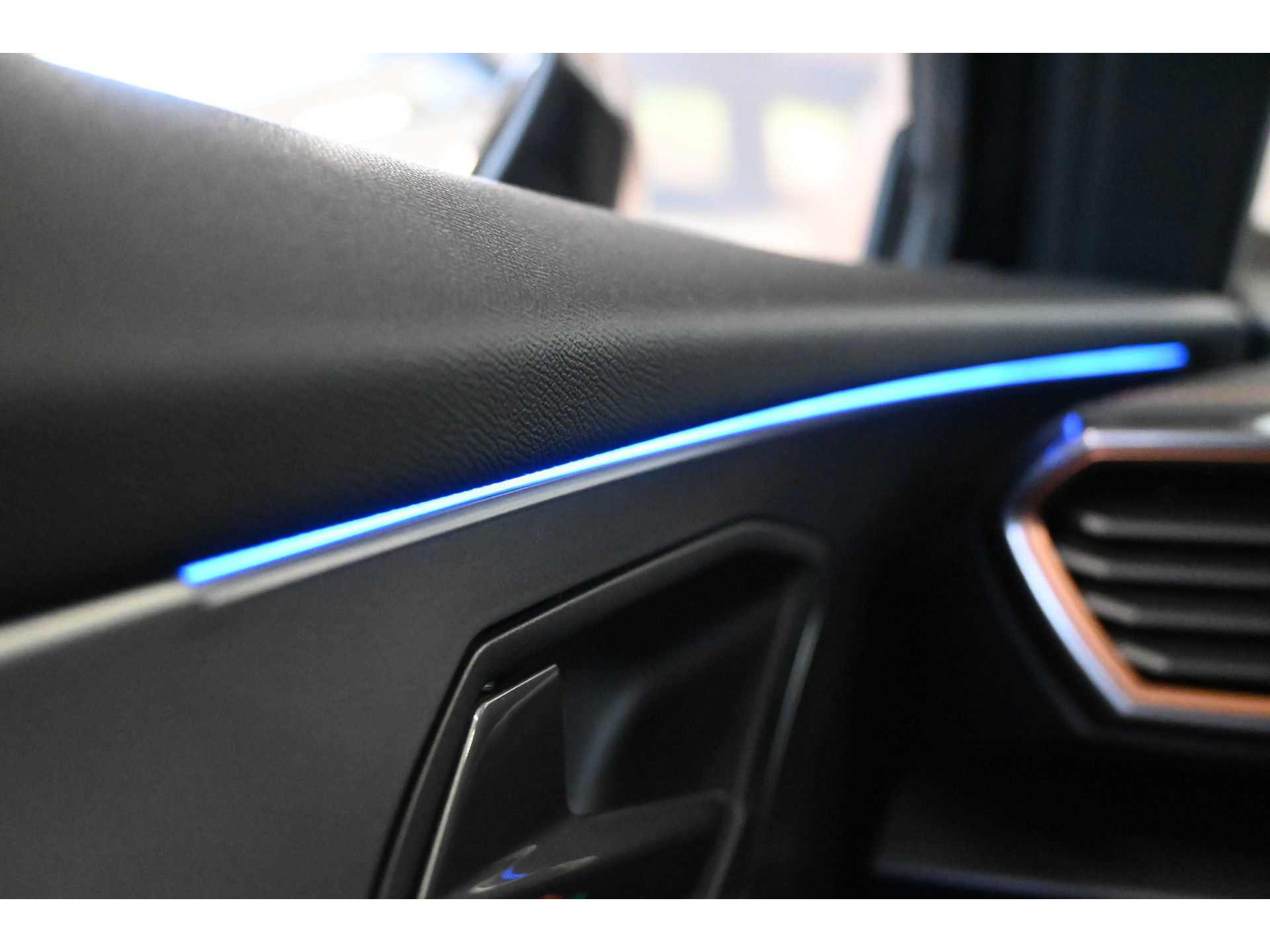 Een digitale cockpit, sfeerverlichting en een draadloze telefoonlader maken het interieur compleet.