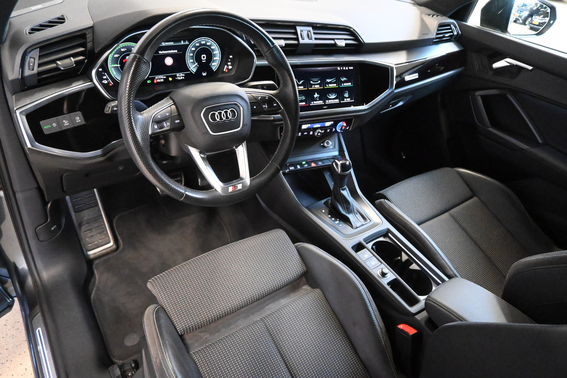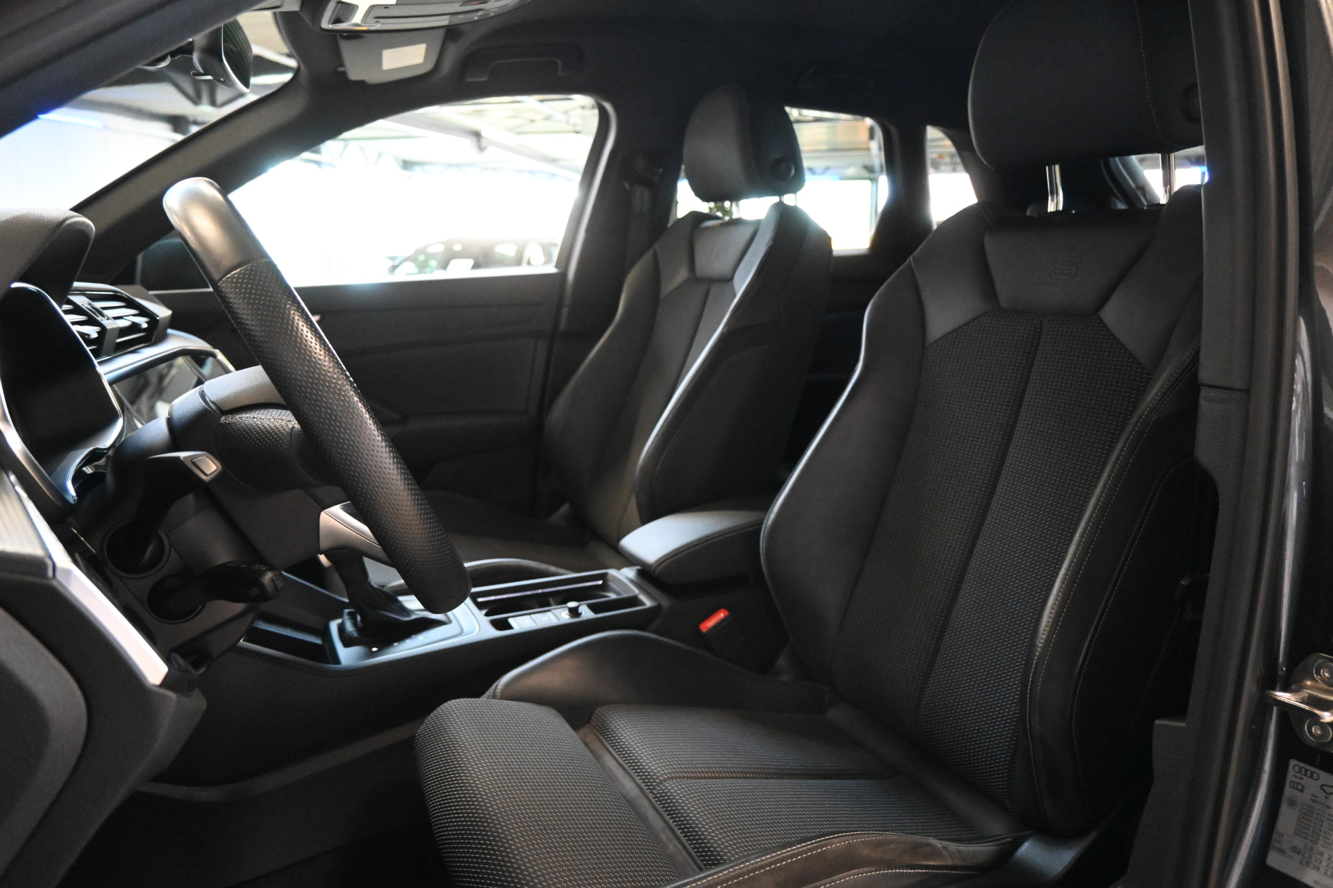 De S-Line sportstoelen zijn bekleed met een mix van leder en stof, beide voorstoelen zijn verwarmbaar.