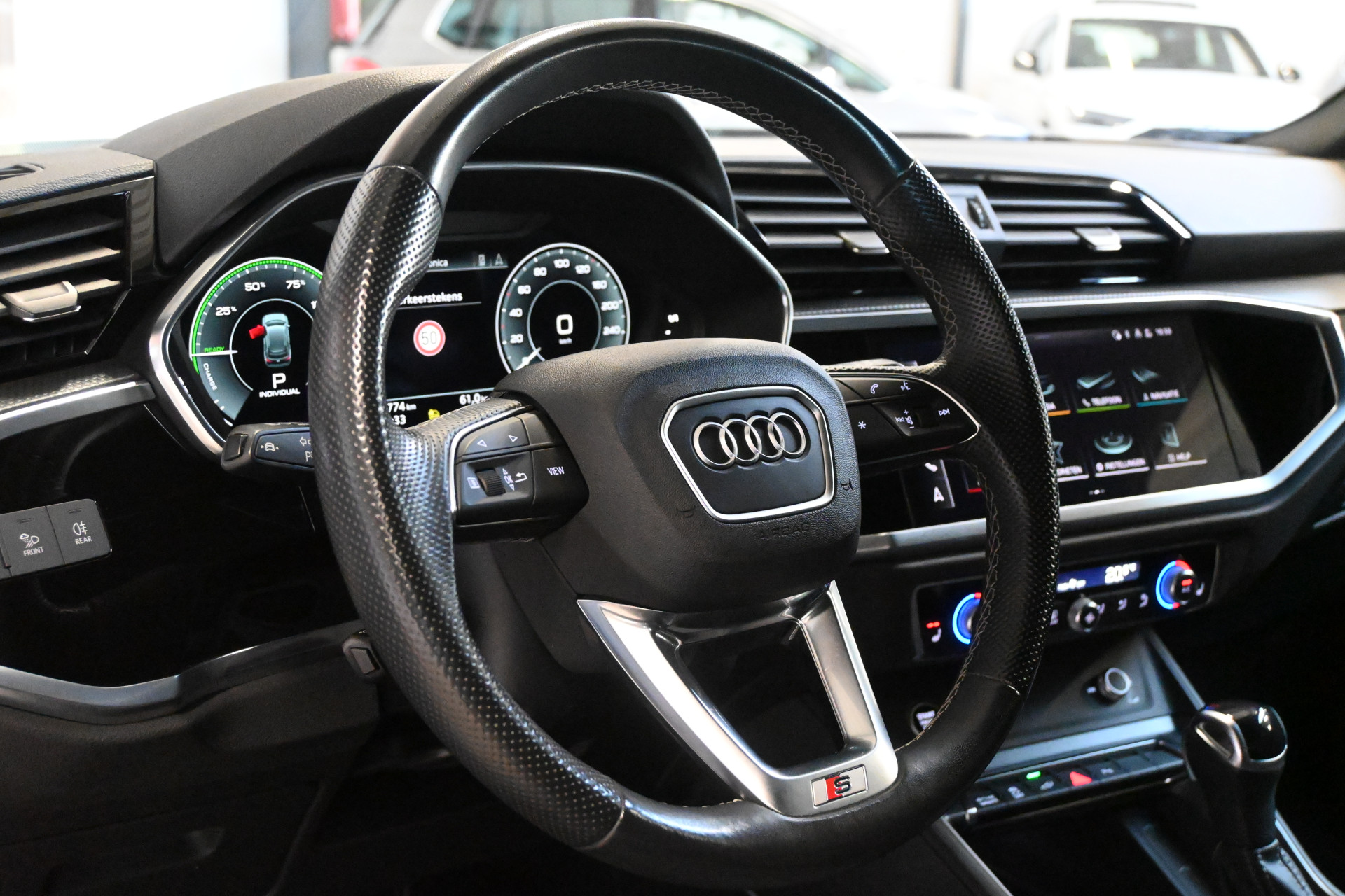 De Audi virtual cockpit, adaptieve cruise control, interieur voorklimatisering en ambienceverlichting maken het interieur compleet.