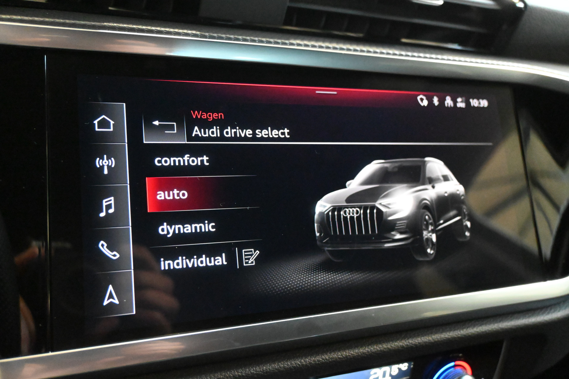 De Audi sport 20 inch lichtmetalen velgen zorgen voor een extra sportief uiterlijk.