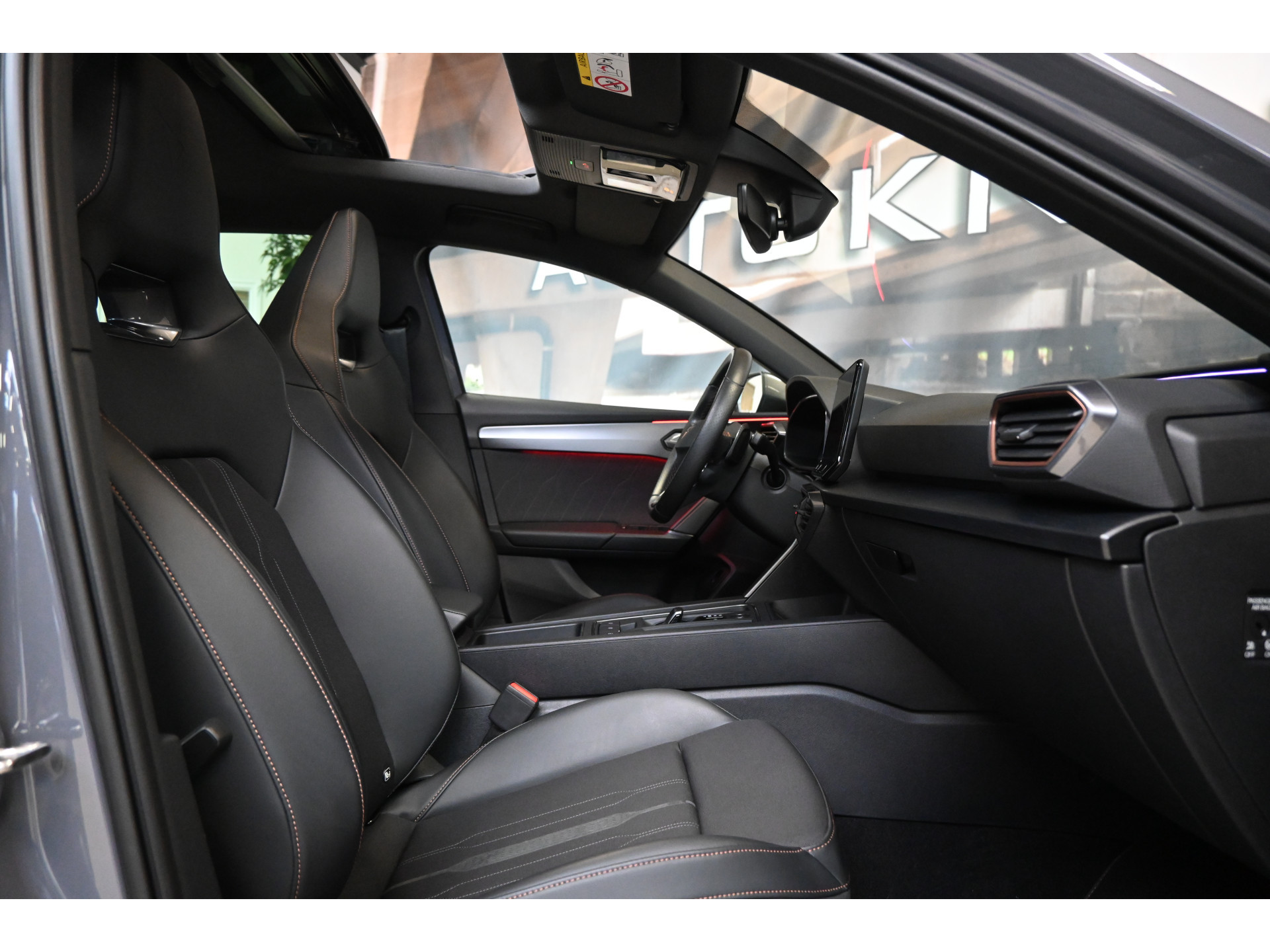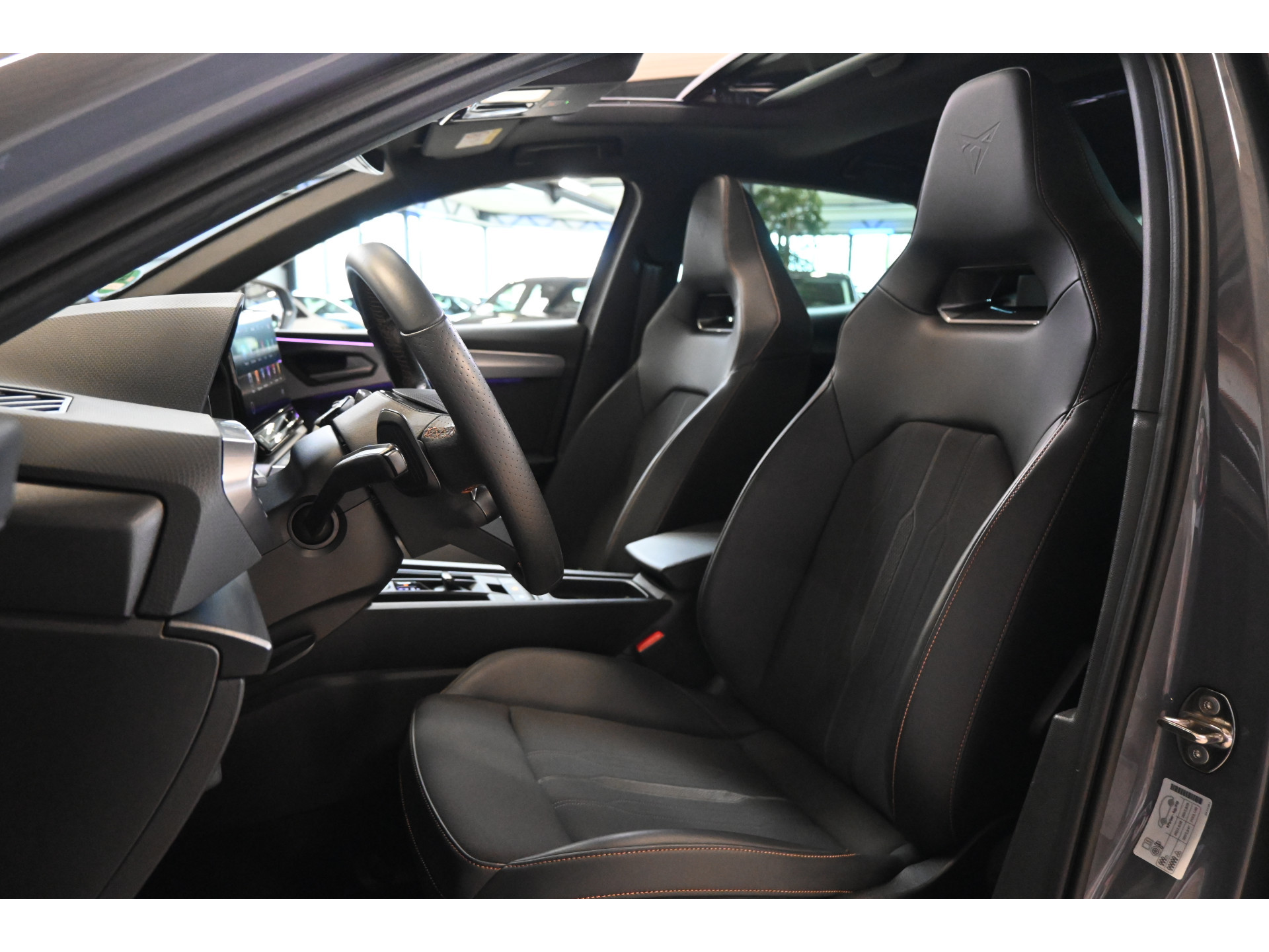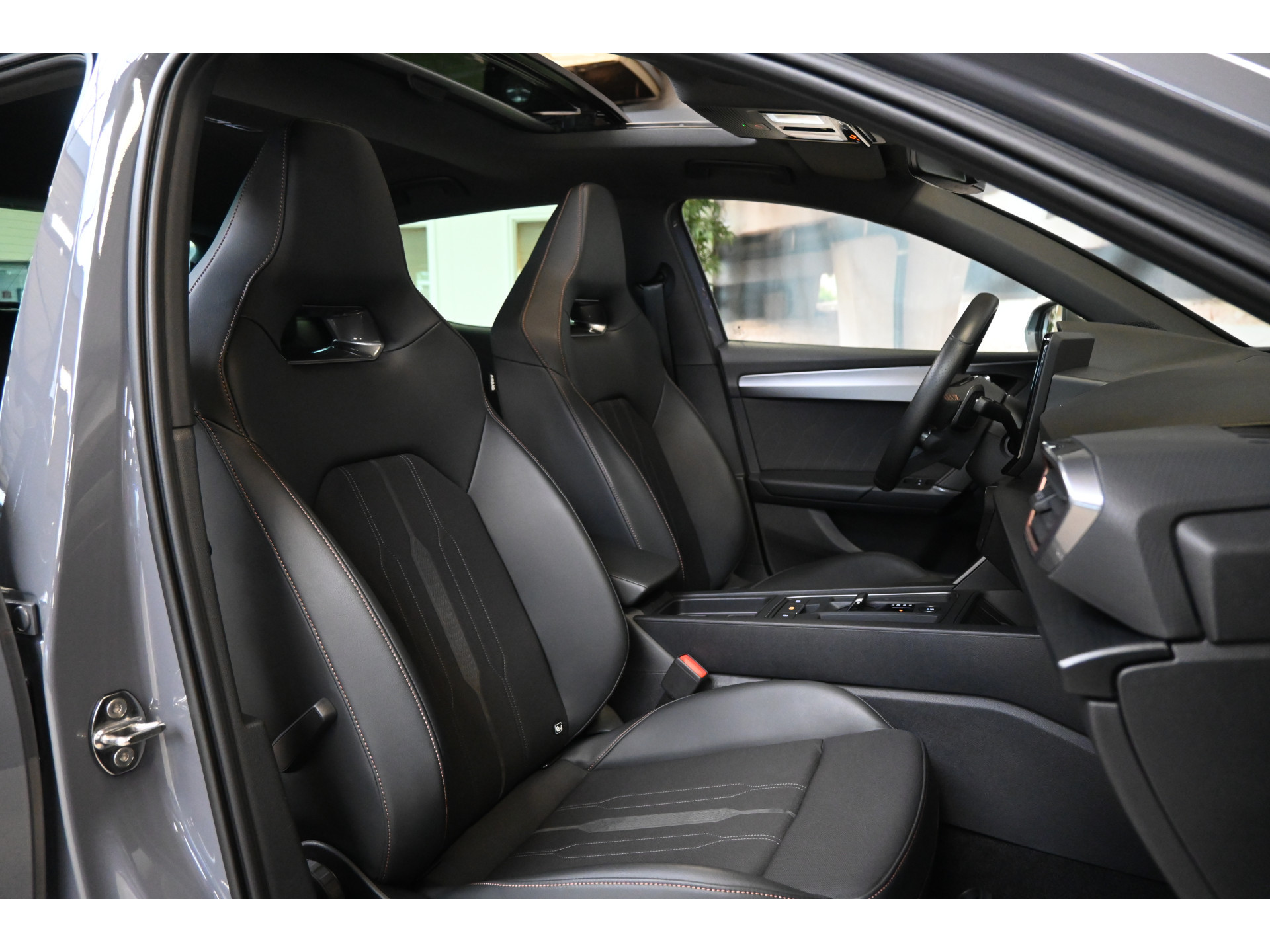 De Cupra sportstoelen zijn bekleed met een mix van leder en stof.