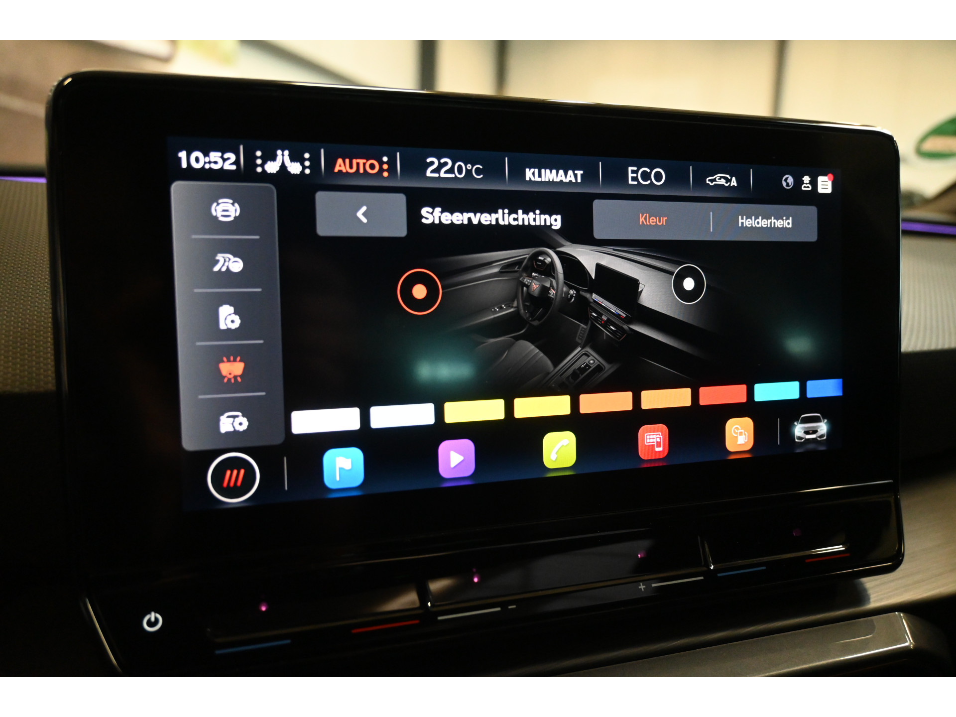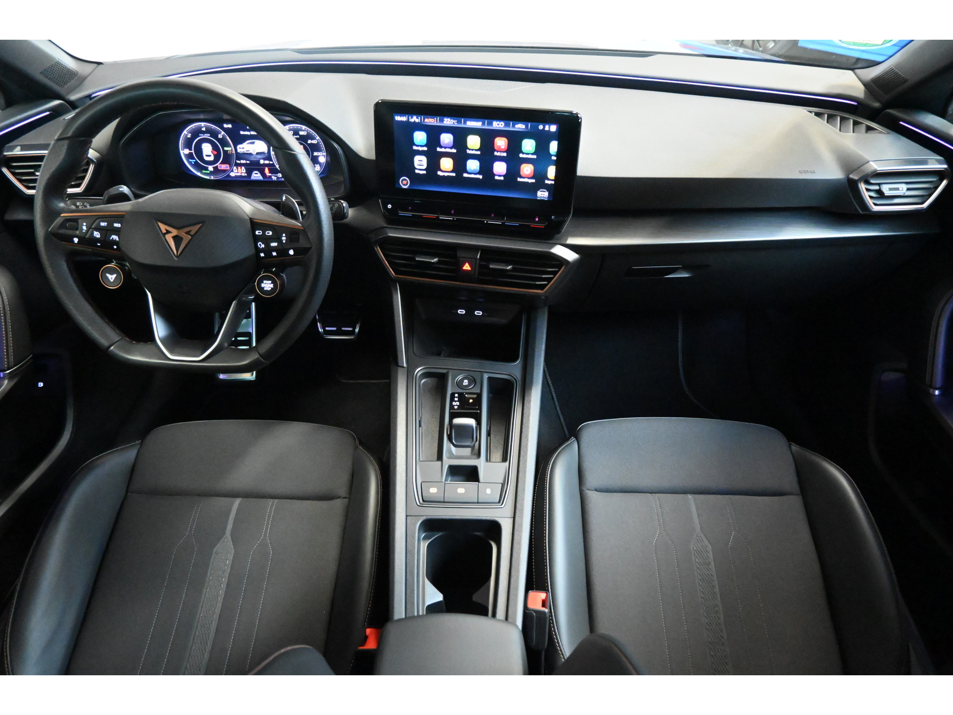 Een digitale cockpit, sfeerverlichting (kleur instelbaar) en een draadloze telefoonlader maken het interieur compleet.