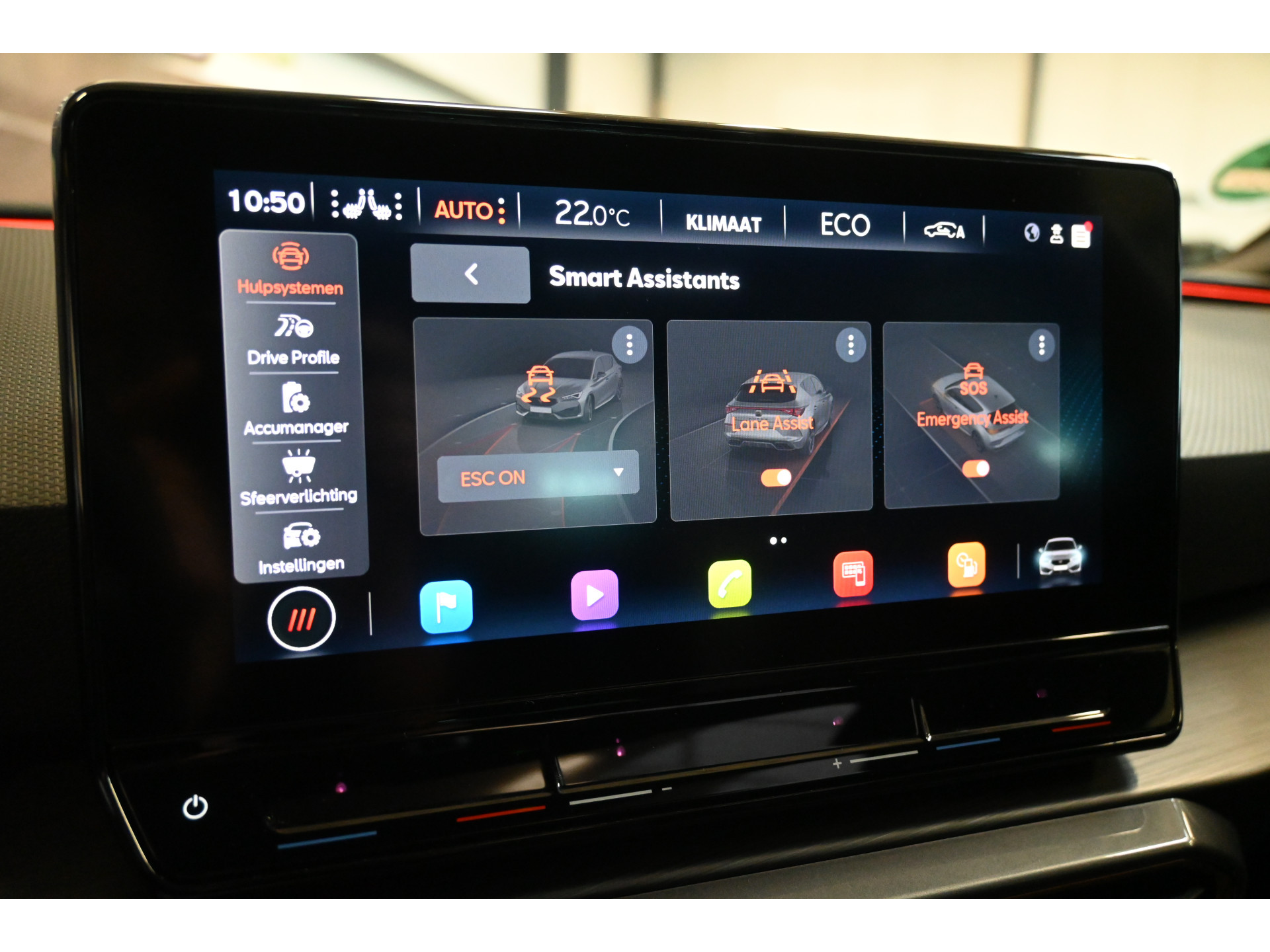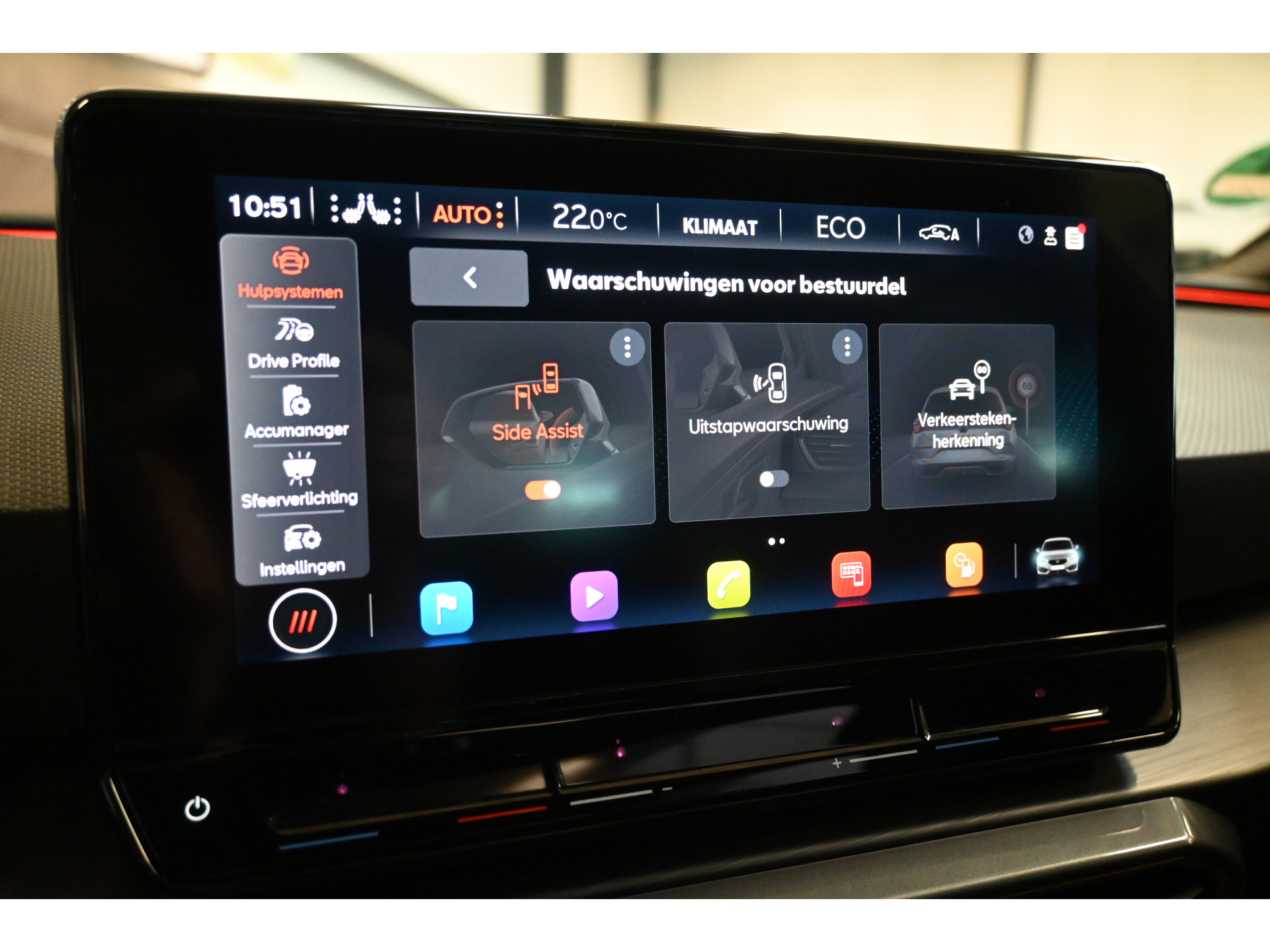 Adaptieve cruise control, side assist en verkeersbordenherkenning zijn enkele van de aanwezige veiligheidssystemen.