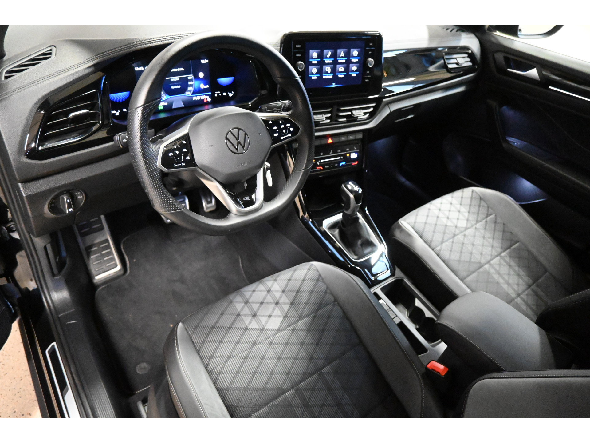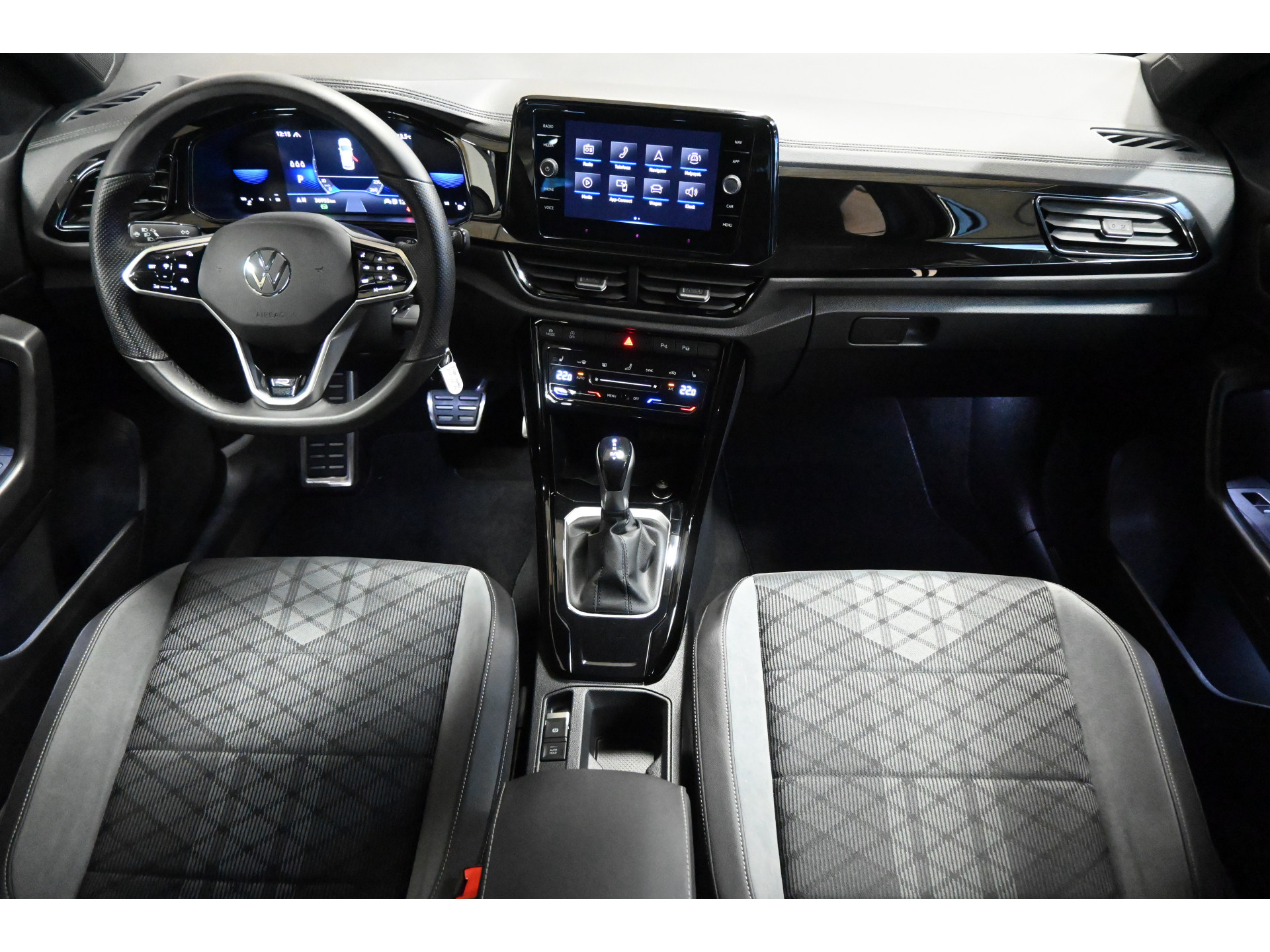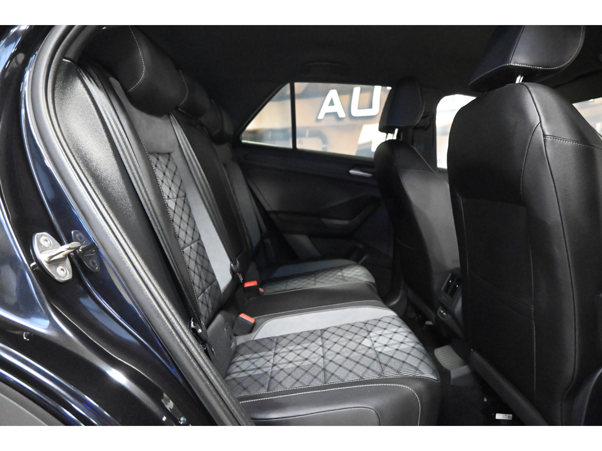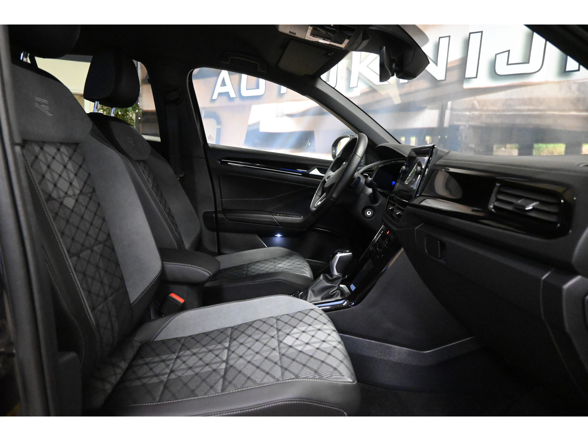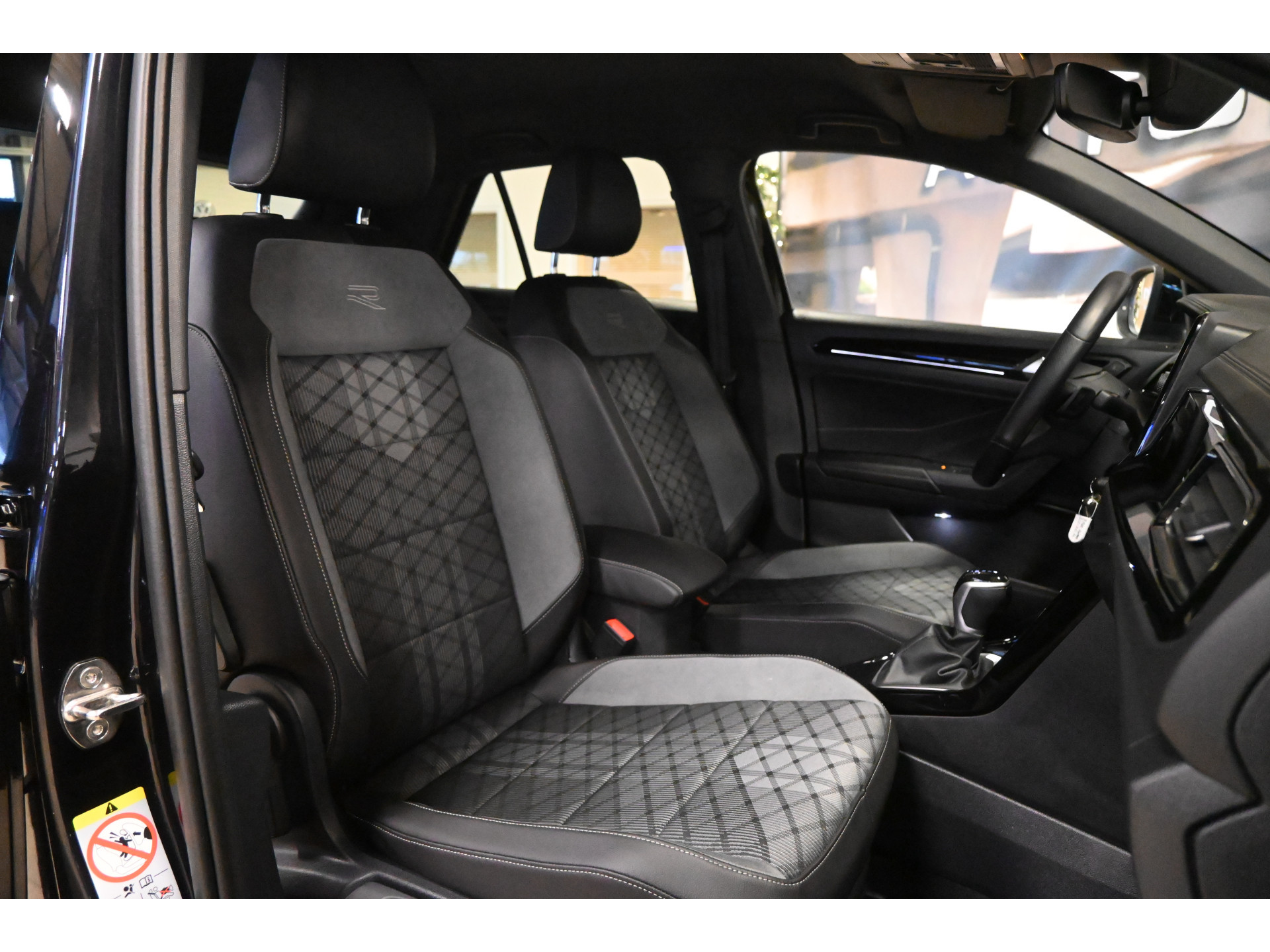 De R-Line sportstoelen zijn bekleed met een mix van leder, alcantara en stof.