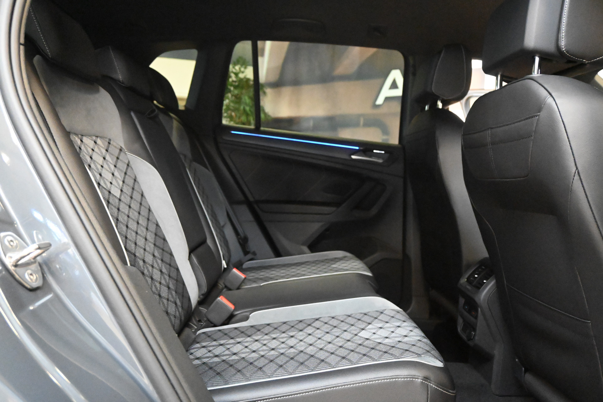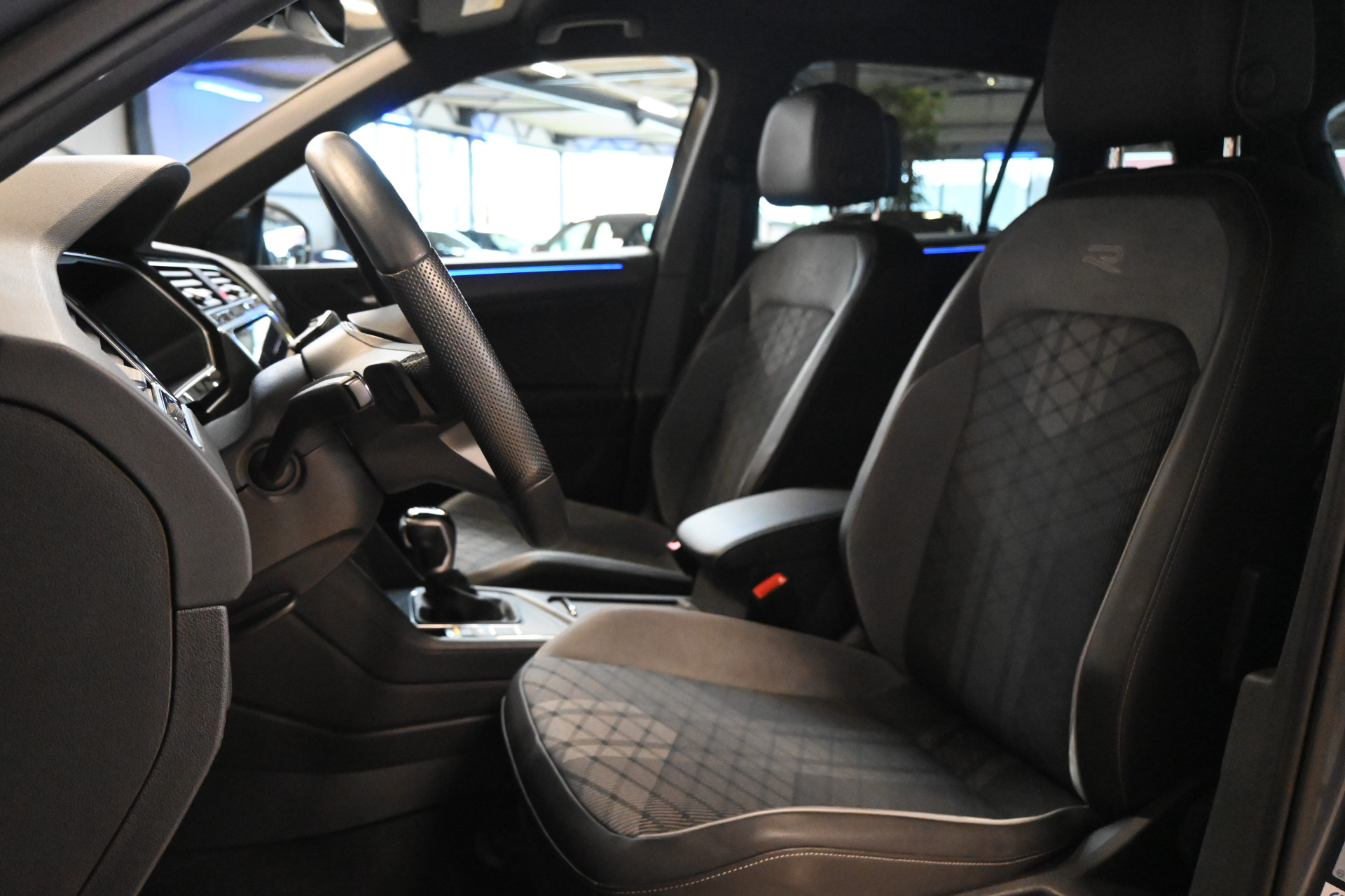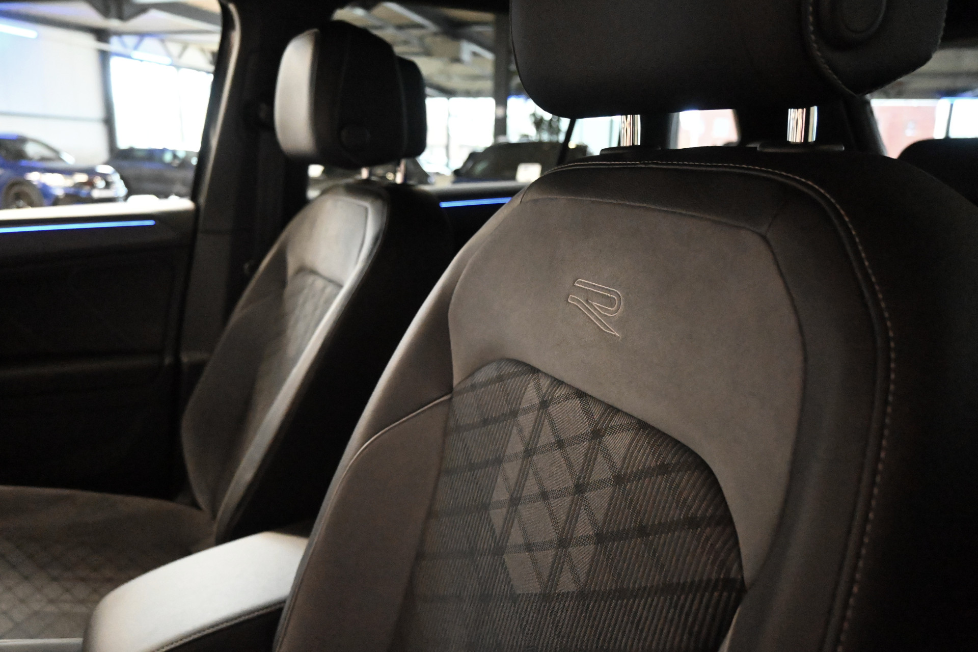 De R-Line sportstoelen zijn bekleed met een mix van leder, alcantara en stof.