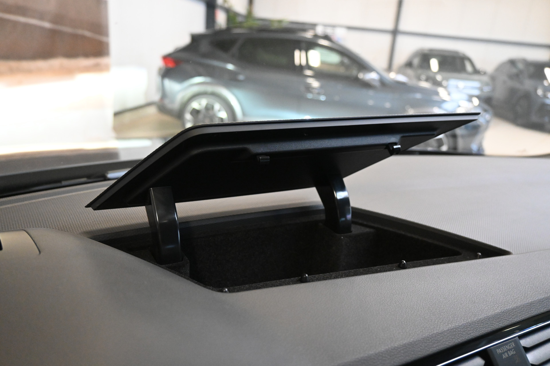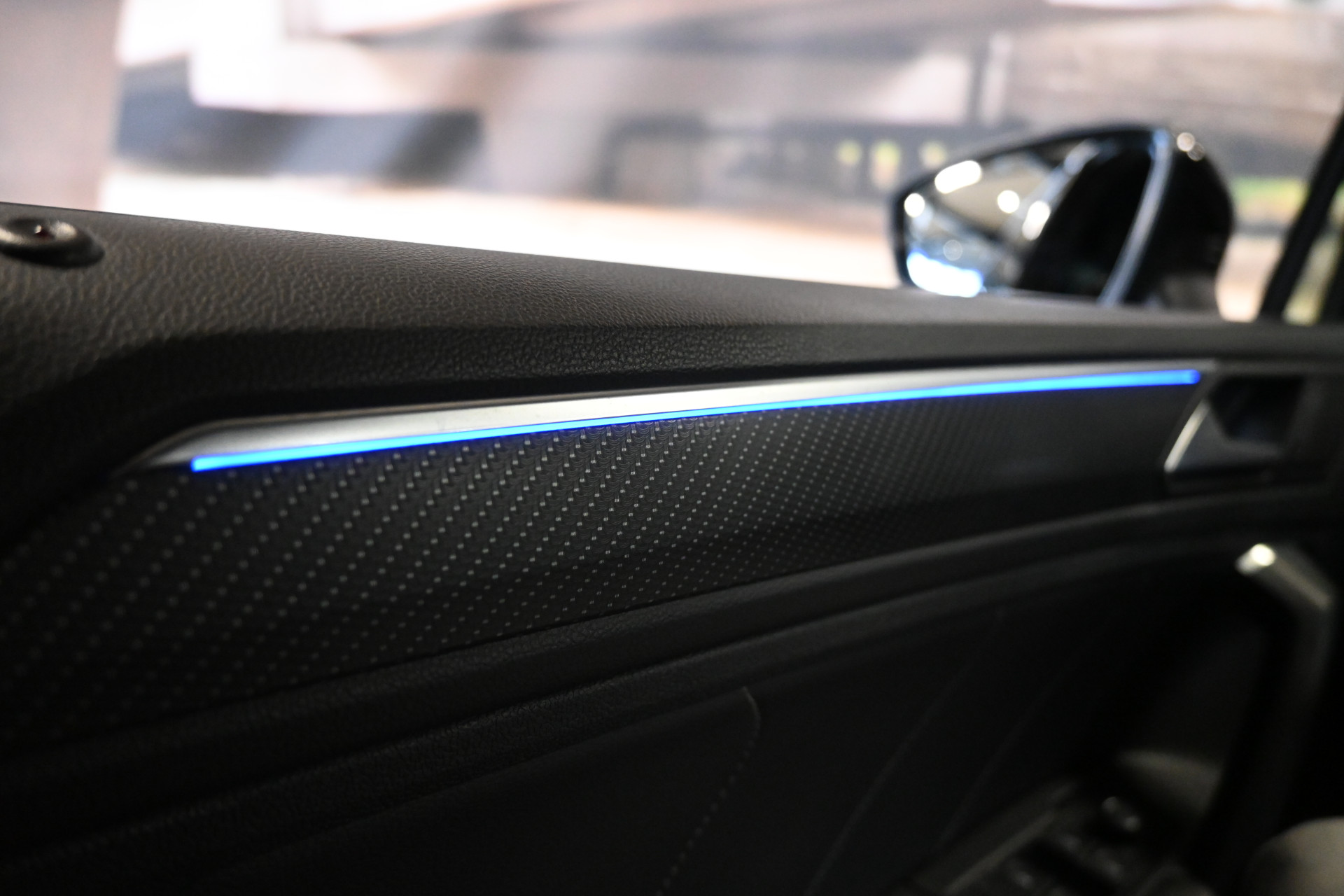 Adaptieve cruise control, sfeerverlichting (kleur instelbaar), een draadloze telefoonlader en het head-up display maken het interieur compleet.