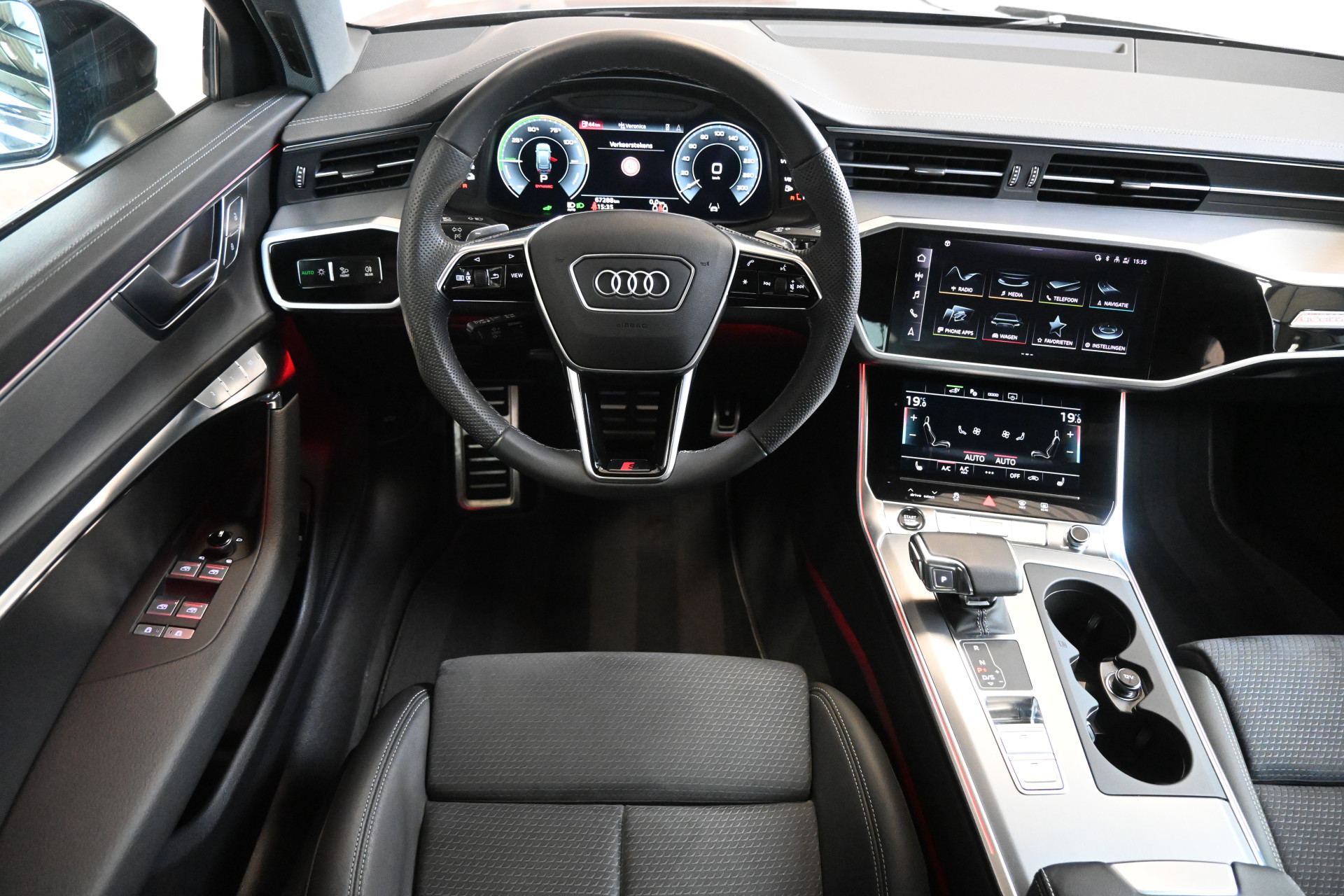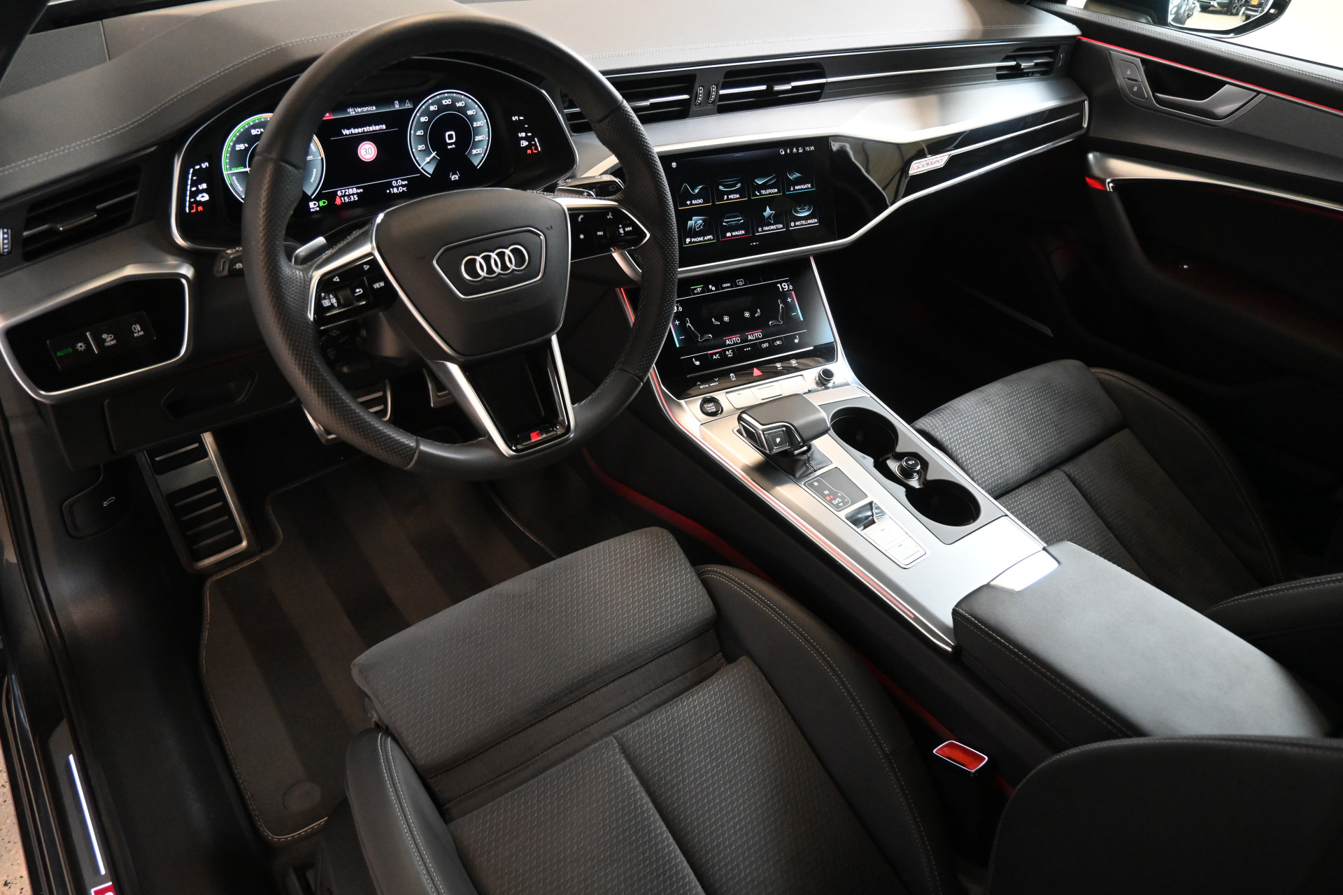 De S-Line sportstoelen zijn bekleed met een mix van leder en alcantara, beide zijn verwarmbaar net als het stuurwiel.