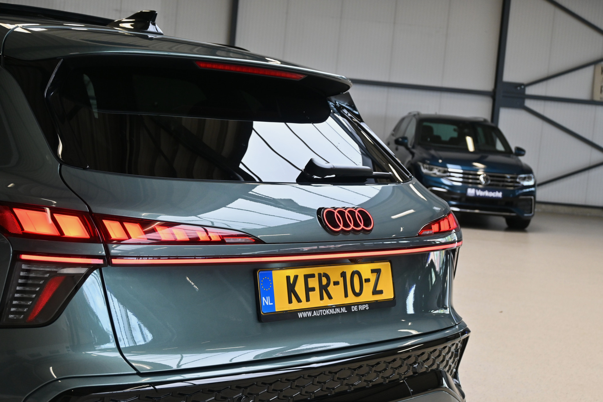 Deze Q3 is gespoten in de kleur Salbeigrün, een groen/grijze metallic lak.