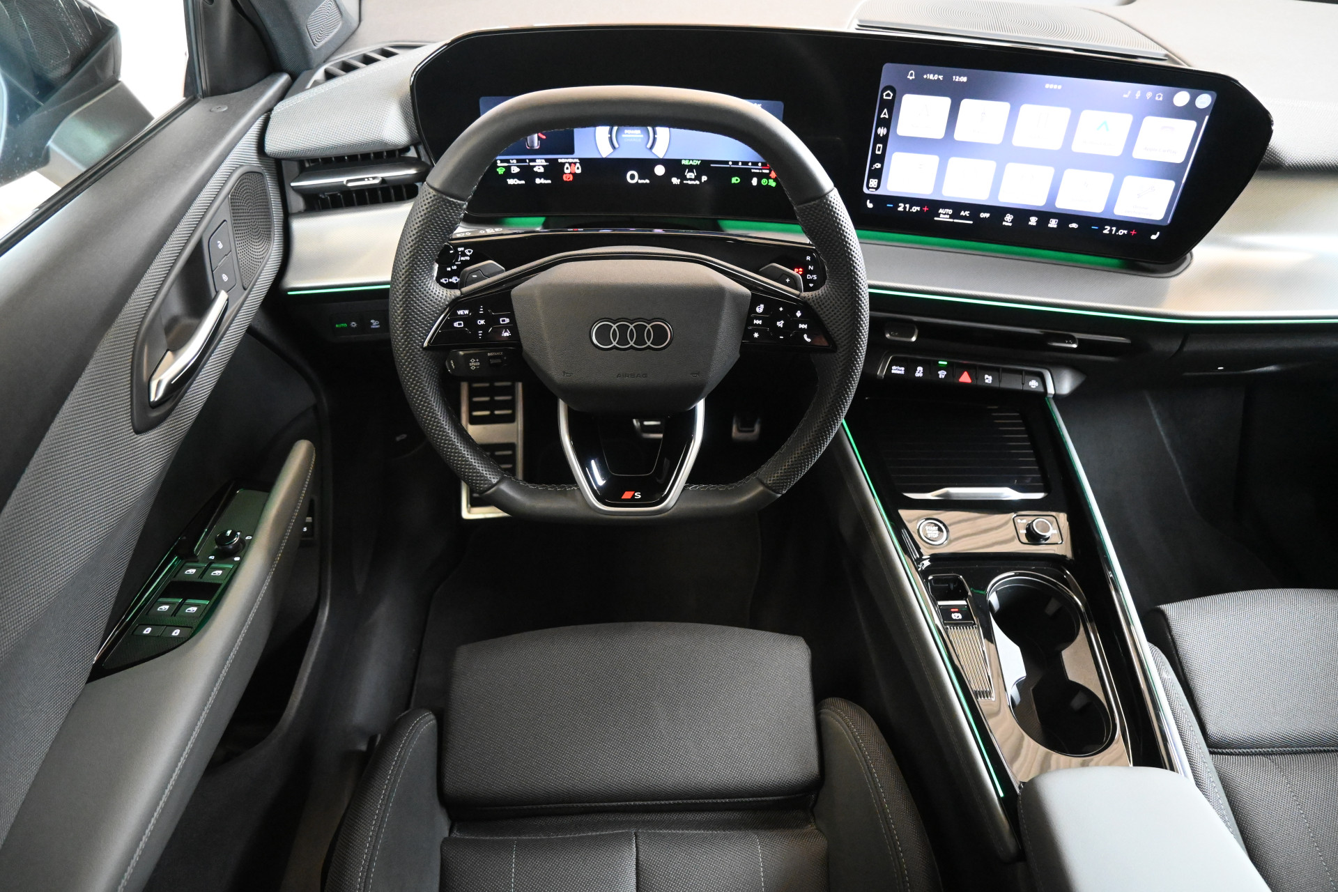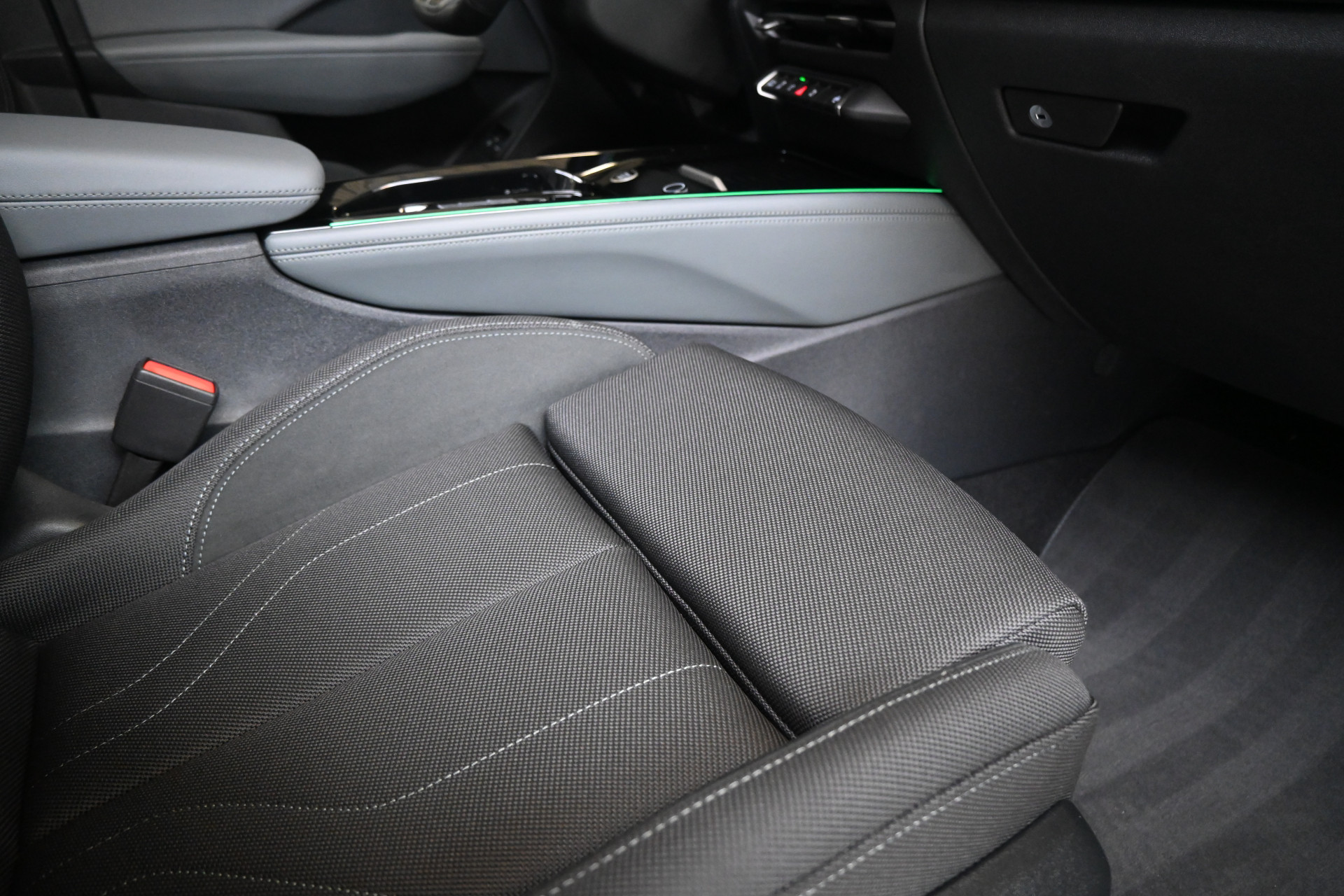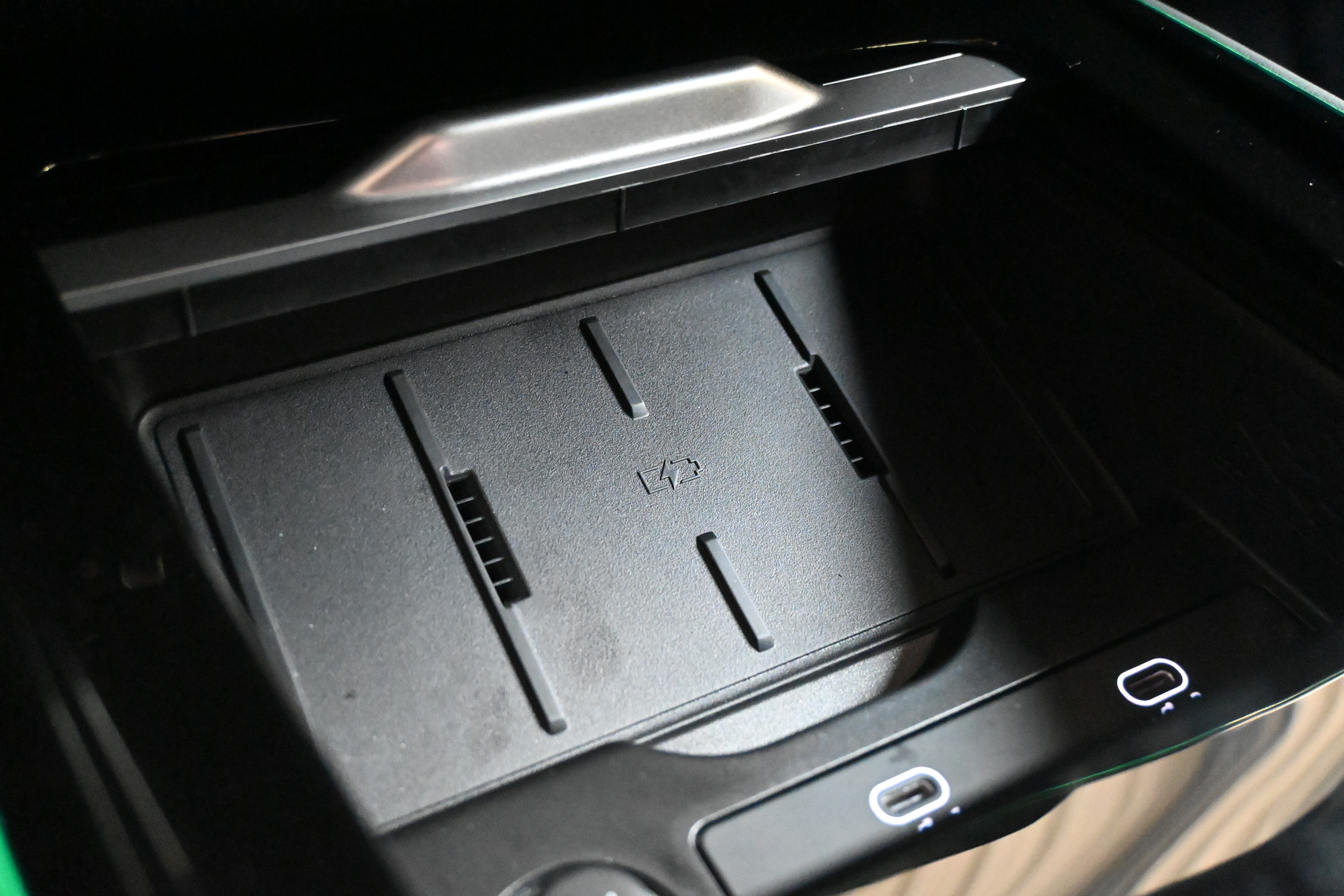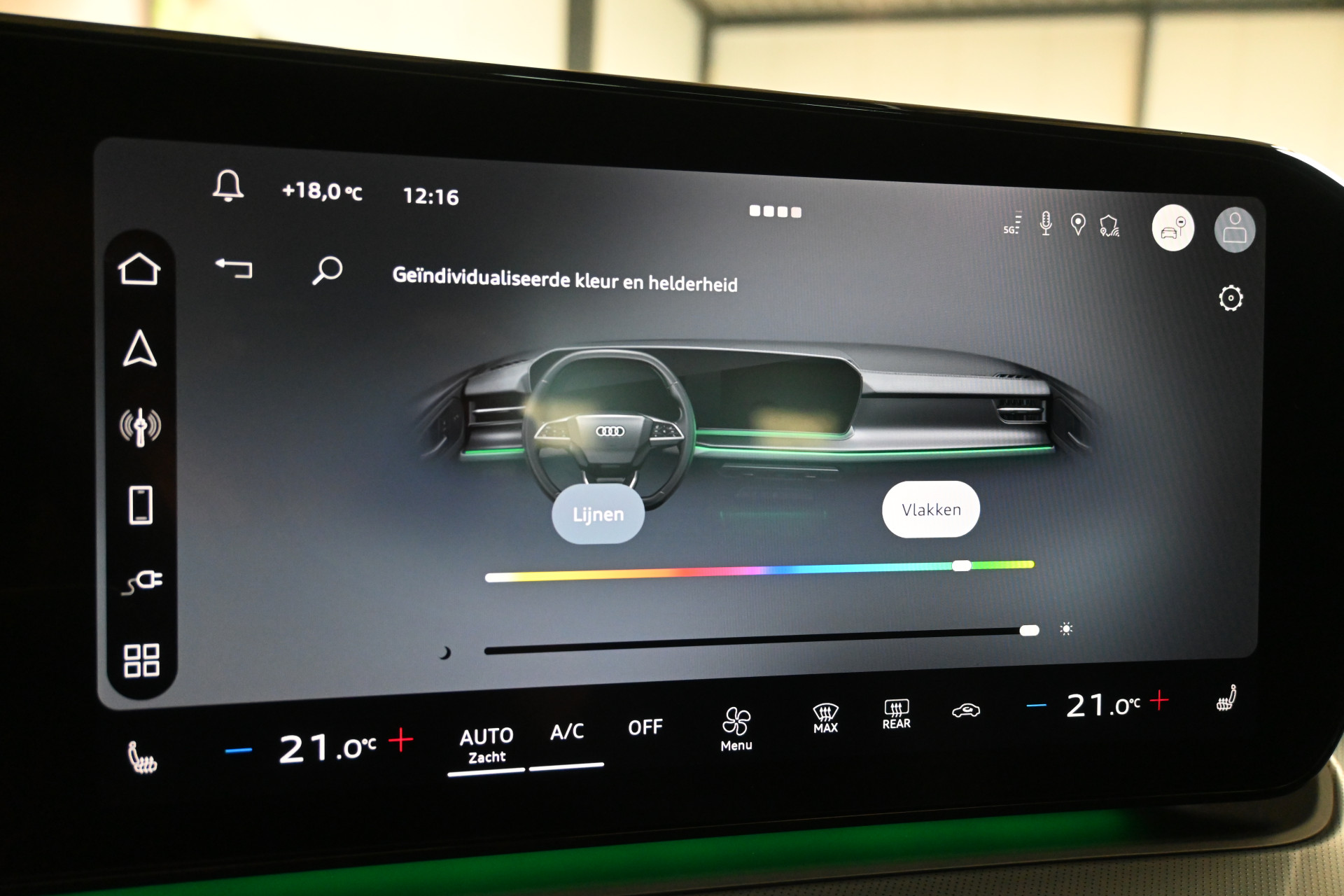 Adaptieve cruise control, sfeerverlichting (kleur instelbaar) en een draadloze telefoonlader maken het interieur compleet.